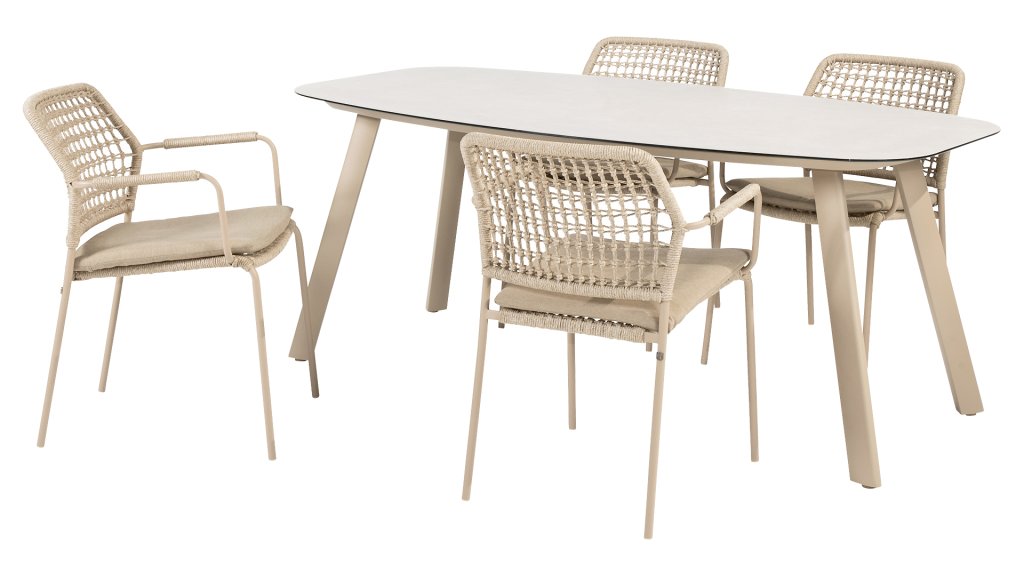 Suchen Sie einen pflegeleichten Tisch mit modernem Look? Dann ist der Taste by 4 Seasons Outdoor Manolo 180 cm genau das Richtige für Sie. Erhältlich in den Farben Anthrazit, Latte und Terre. Die Form der Tischplatte und die Position der Aluminiumbeine machen diesen Tisch unglaublich praktisch. Diese Form schafft großzügigen Platz an allen Seiten. Das markante Design des Tisches zeichnet sich durch eine dänische ovale Tischplatte aus glasbedruckter Keramik aus, sodass er das ganze Jahr über im Freien stehen kann. Der Manolo ist auch in den Größen 75x75x75cm und 240x103x75cm in drei Farben erhältlich.