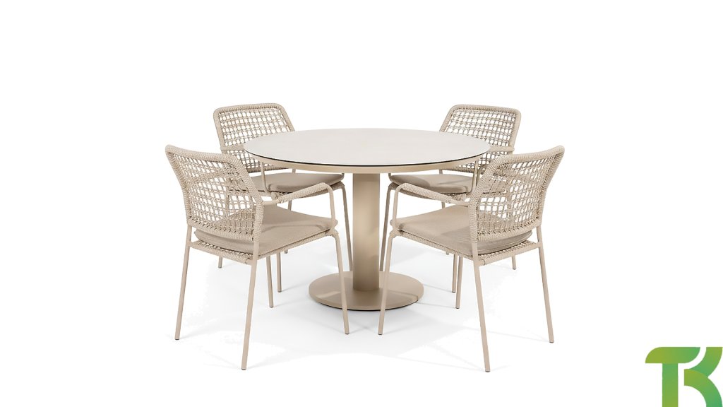 Lernen Sie Taste Sarah kennen, den runden Tisch, der Eleganz und Funktionalität mühelos vereint. Dieser schöne Tisch ist ein echter Hingucker in jedem Garten oder Essbereich. Sein rundes Design schafft eine gemütliche, einladende Atmosphäre, in der alle am Tisch in Kontakt bleiben. Die hochwertig bedruckte Keramikplatte sorgt nicht nur für eine luxuriöse Optik, sondern ist auch außergewöhnlich robust, kratzfest und pflegeleicht. Das zentrale Bein bietet maximale Beinfreiheit und verleiht dem Tisch einen modernen, luftigen Look. Taste by 4 Seasons Outdoor Sarah ist in zwei Ausführungen und zwei Farben erhältlich. Der Tisch ist in zwei Größen erhältlich: 120x75cm (Dining) und 130x69cm (Low Dining) in den Farben Latte und Terre.