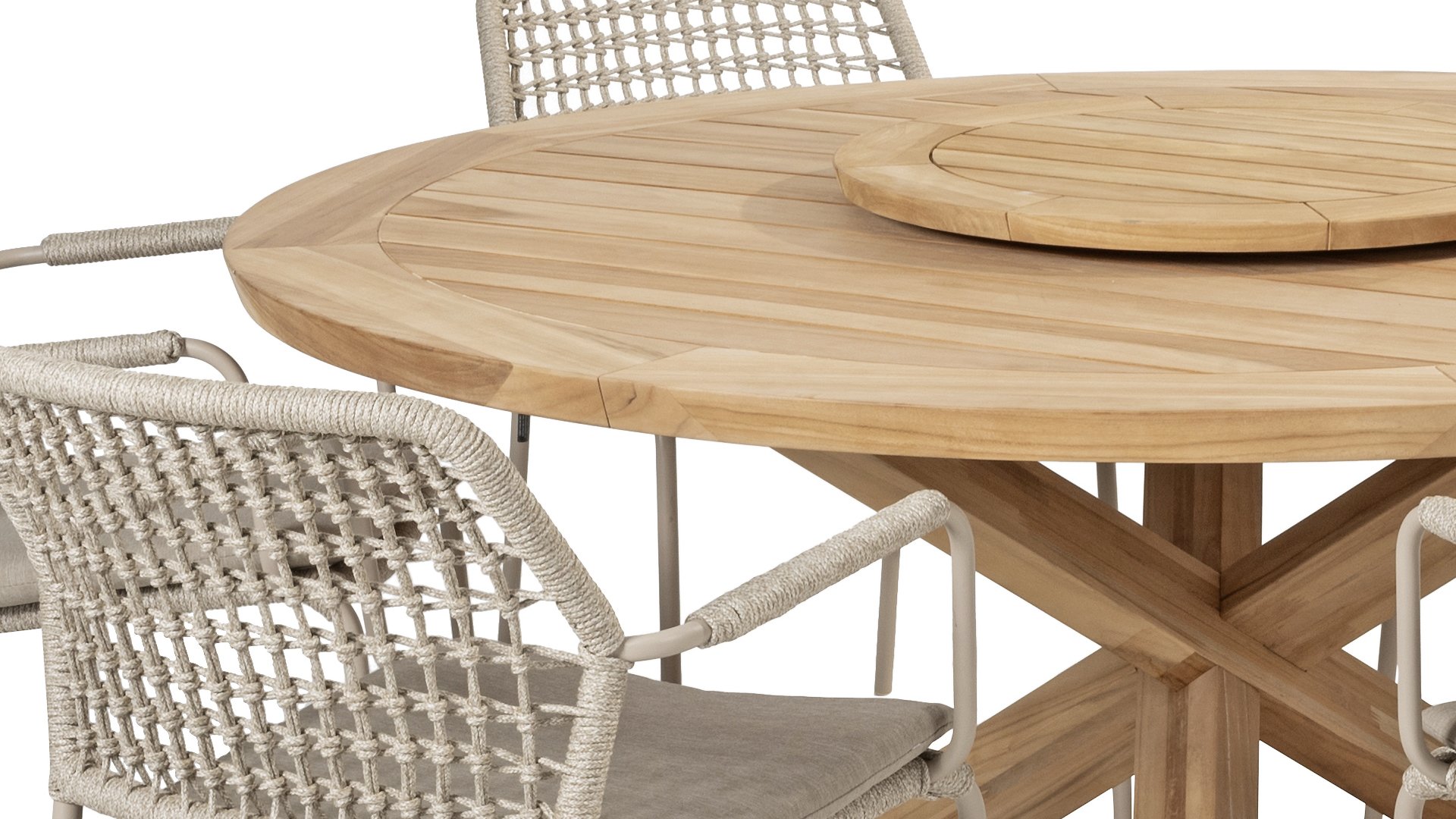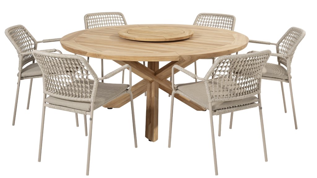 Gartenmöbel aus Teakholz bieten einen atemberaubenden Blick.Teakholz eignet sich besonders gut für den Einsatz im Außenbereich. Es ist resistent gegen Schädlinge und Pilze und widerstandsfähig gegen Sonne, Regen und Schnee. Mit der Zeit entwickelt das Teakholz eine silbergraue Patina. Gartenmöbel aus Teakholz bieten einen atemberaubenden Blick. Darüber hinaus ist es starkes Material und erfordert nur wenig Wartung. Wer die ursprüngliche Farbe des Teakholzes bevorzugt, kann durch regelmäßiges benutzen unser Pflegemittel ganz einfach das Vergrauen des Holzes verhindern.Darüber hinaus können Sie Teak mit grüner Seife reinigen. Durch Temperaturunterschiede und durch den Wechsel von Feuchtigkeit und Trockenheit können kleine Haarrisse entstehen. Es ist üblich, dass Man in dies Unvollkommenheiten findet, diese Unregelmäßigkeiten sind kennzeichnend für dieses Produkt. Diese Unregelmäßigkeiten können nie einen Anlass zu Reklamation, Garantie oder Claim formen. Es betrifft eine Unterschrift von Originalität! Wir gewähren Garantie auf alle Produktions- und Konstruktionsfehler. Die Wirkung von Teakholz ist nicht enthalten. Wenn Sie sich für Teakholz entscheiden, erwarten wir, dass Sie diese Eigenschaften zu schätzen wissen. Eventuell auftretende Haarrisse, Äste im Teakholz und raue Oberflächen im Laufe der Zeit fallen nicht unter unsere Garantie. Diese Eigenschaften verleihen dem Teakholz seinen eigenen Charakter und sind Teil der Optik. Seien Sie vorsichtig mit einem Blumentopf oder einer Vase auf Ihrem Gartentisch aus Teakholz, da dies zu hartnäckigen Kreisen oder Farbunterschieden führen kann.