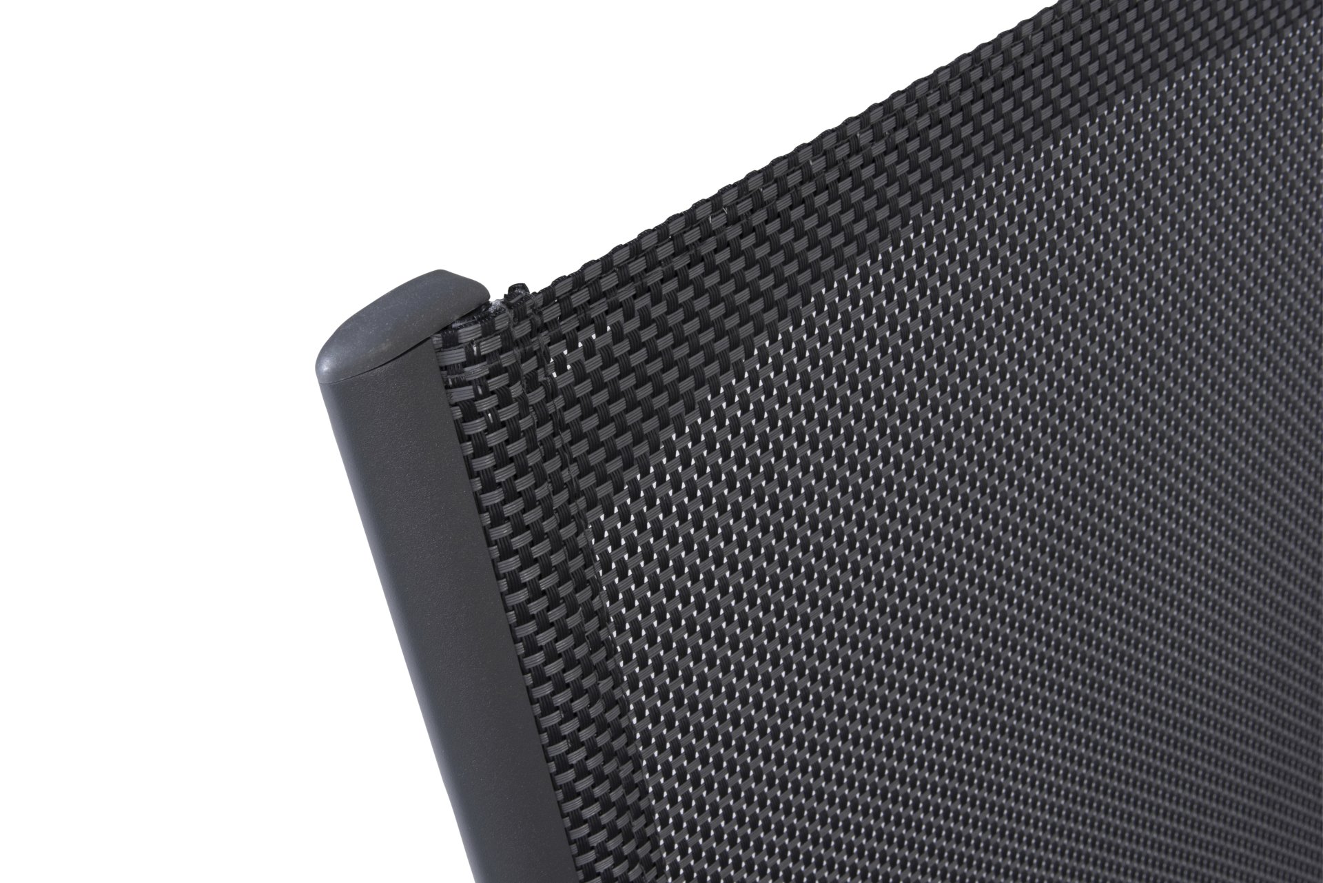 Textilene besteht aus gewebten Polyesterfasern, die zusammen ein robustes Gewebe bilden. Dank seiner Zusammensetzung ist es ein sehr strapazierfähiges, langlebiges, formstabiles und farbechtes Material. Da es sich um ein Gewebe handelt, ist es wasserdurchlässig und trocknet schnell. Dies verleiht ihm eine lange Lebensdauer und macht es ideal für den Außenbereich. Textilene ist pflegeleicht und daher besonders praktisch für den Einsatz im Freien. Es lässt sich leicht reinigen, da es im Wesentlichen aus Polyester besteht. All diese Eigenschaften machen Textilene zu einem angenehmen Material für den Außenbereich.