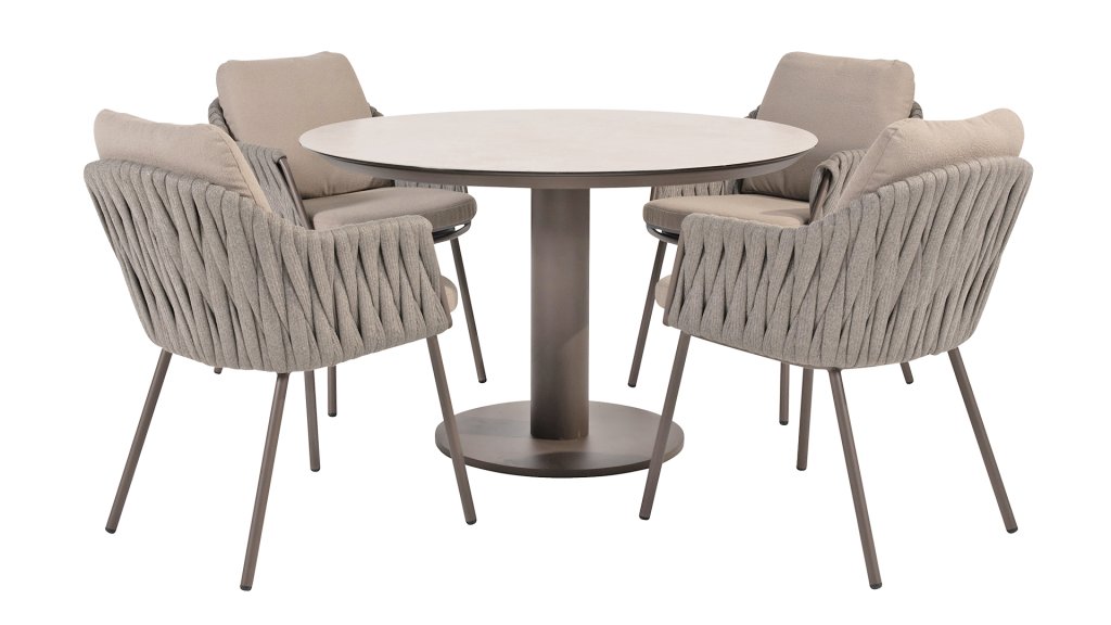 Lernen Sie Taste Sarah kennen, den runden Tisch, der Eleganz und Funktionalität mühelos vereint. Dieser schöne Tisch ist ein echter Hingucker in jedem Garten oder Essbereich. Sein rundes Design schafft eine gemütliche, einladende Atmosphäre, in der alle am Tisch in Kontakt bleiben. Die hochwertig bedruckte Keramikplatte sorgt nicht nur für eine luxuriöse Optik, sondern ist auch außergewöhnlich robust, kratzfest und pflegeleicht. Das zentrale Bein bietet maximale Beinfreiheit und verleiht dem Tisch einen modernen, luftigen Look. Taste by 4 Seasons Outdoor Sarah ist in zwei Ausführungen und zwei Farben erhältlich. Der Tisch ist in zwei Größen erhältlich: 120x75cm (Dining) und 130x69cm (Low Dining) in den Farben Latte und Terre. Entdecken Sie sie unten: