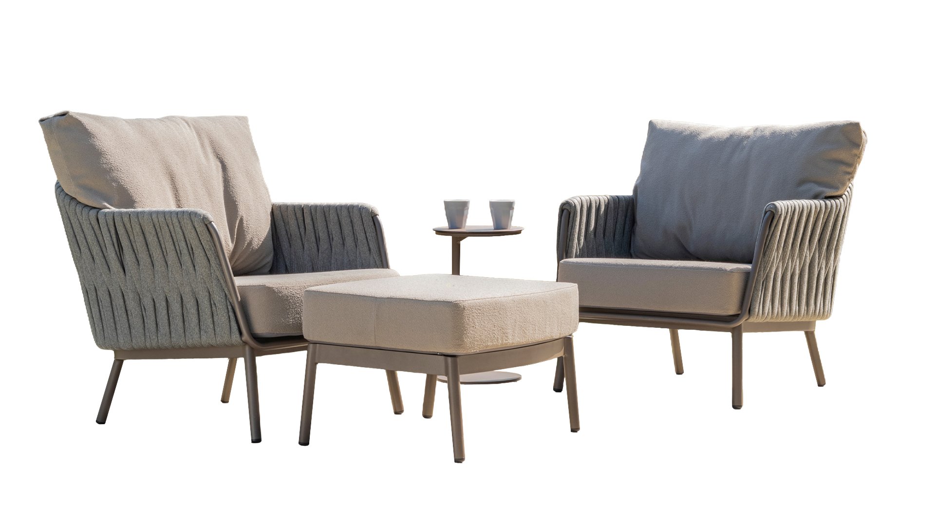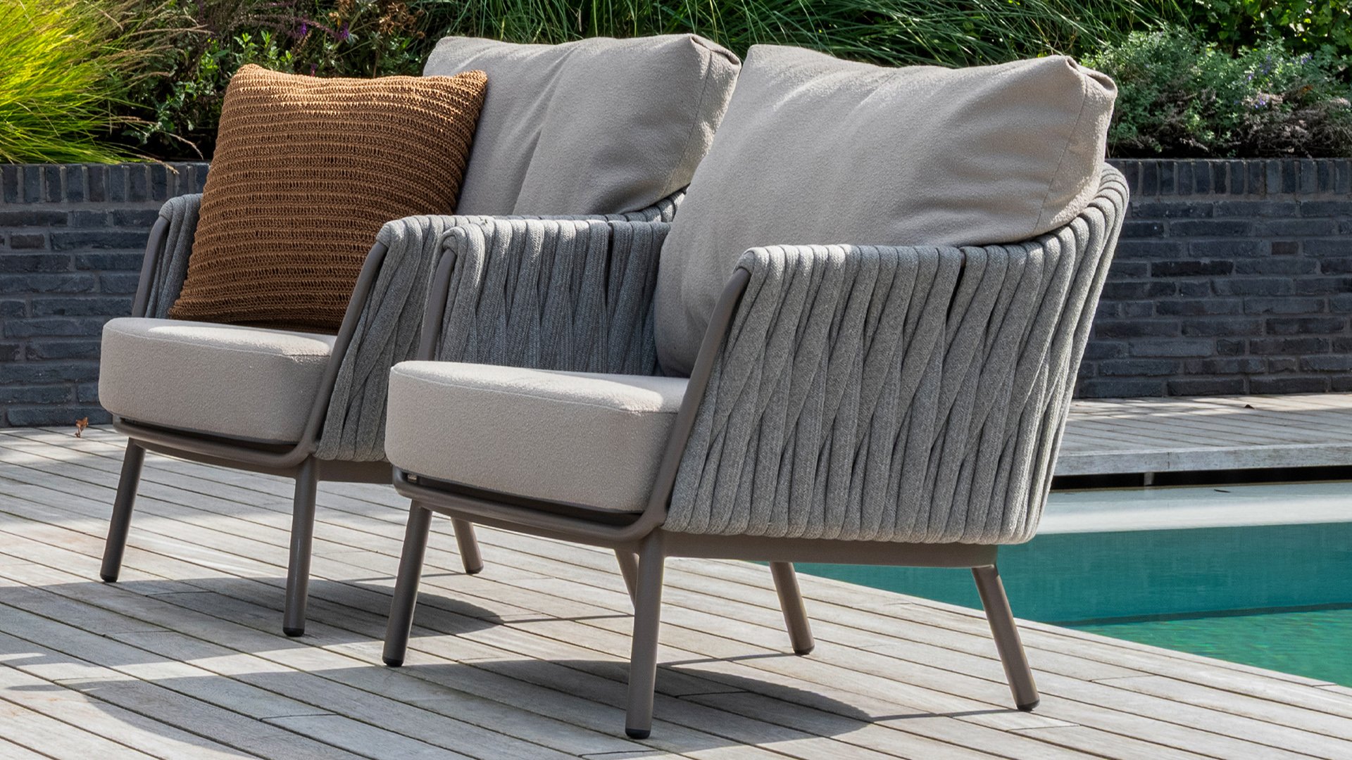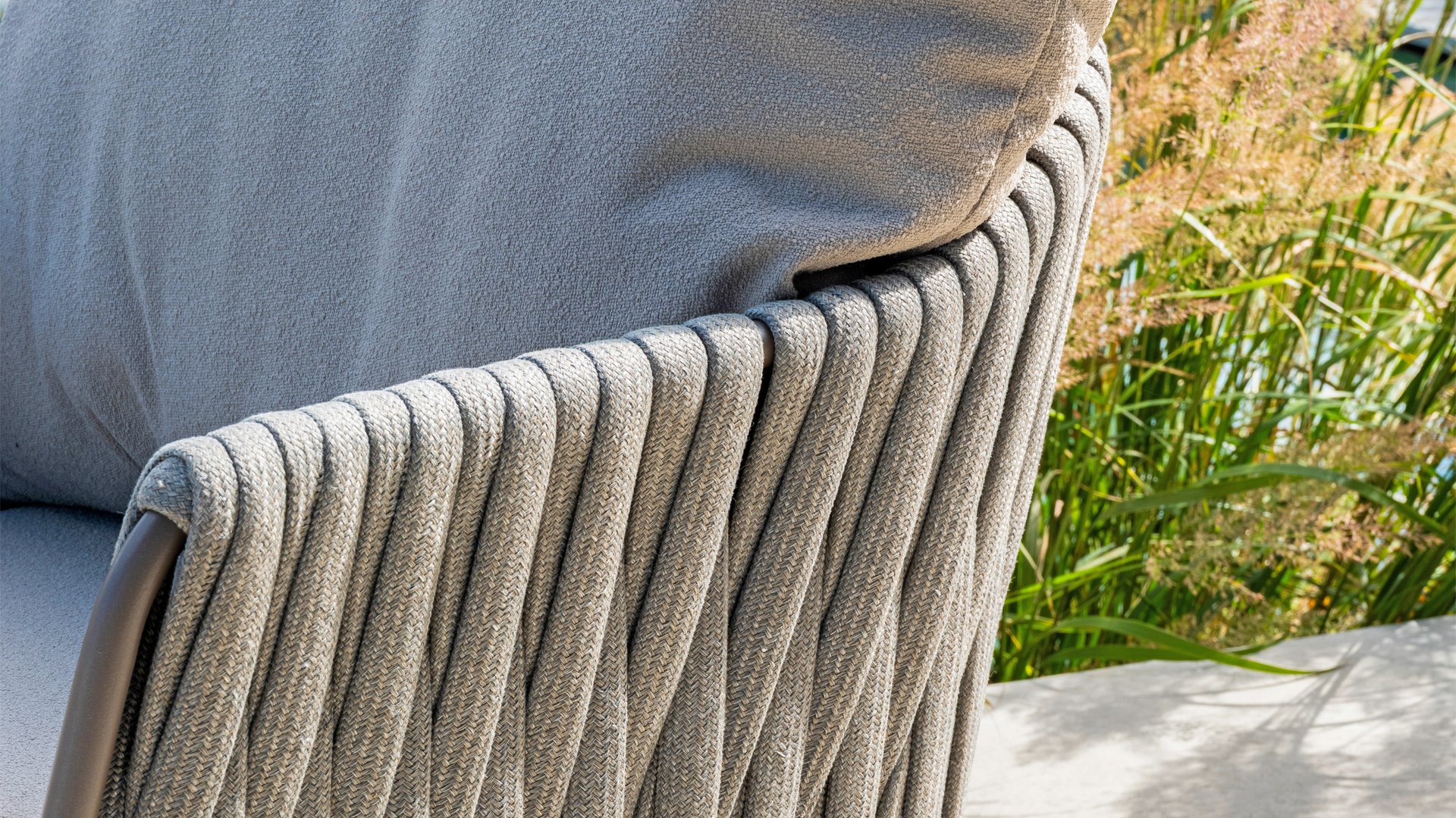 Langlebige Materialien: Pulverbeschichtetes Aluminium und Rope-Gewebe sind wetterbeständig und langlebig, sodass der Sessel ideal für den Außenbereich ist.