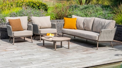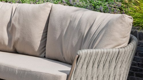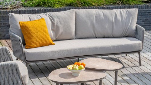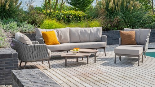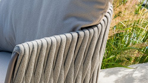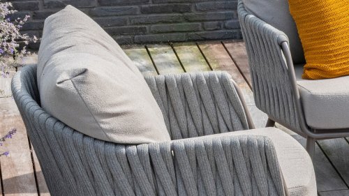 Erleben Sie den Komfort von Cannes. Diese Kollektion lädt Sie ein, stilvoll zu entspannen, mit dem wunderschön geflochtenen Seildesign und den bequemen Kissen. Ob Sie sich für das niedrige Ess-Set entscheiden oder die entspannende Lounge-Variante bevorzugen – Cannes bringt ultimativen Komfort und Eleganz auf Ihre Terrasse oder Ihren Patio. Die perfekte Wahl für lange Sommertage.