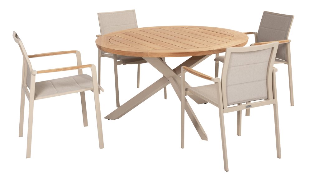 1 x Taste 4Seasons Prado Tisch Ø130cm Teak-Alu Latte