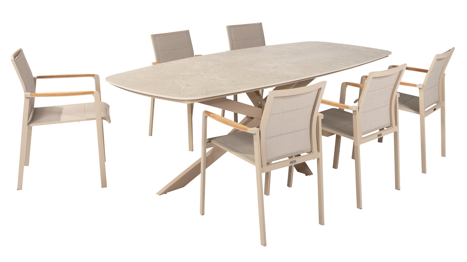 1 x Taste 4Seasons Prado Barrel Tisch Keramik-Alu Latte  240x105cm