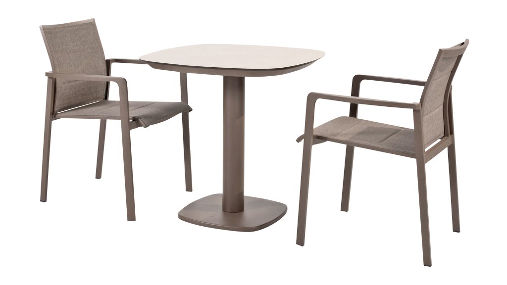 Der Taste 4SO Cortina ist leicht und vollständig stapelbar. Wenn Sie die Stühle eine Zeit lang nicht benötigen oder sie über den Winter einlagern möchten, nehmen sie nur minimalen Platz ein. Der Stuhl ist in verschiedenen Farben erhältlich, darunter Latte, Terre und Anthrazit.