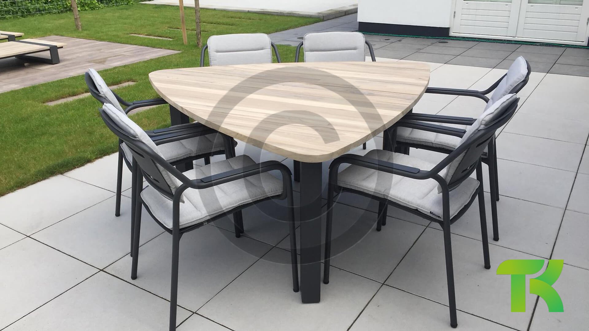 Mit seiner einzigartigen Dreiecksform ist dieser Taste by 4Seasons Triangle Tisch eine wertvolle Ergänzung für Ihren Garten oder Ihre Terrasse. Auch mit Teakbein erhältlich. Teakholz ist in der Farbe Instant Grey.