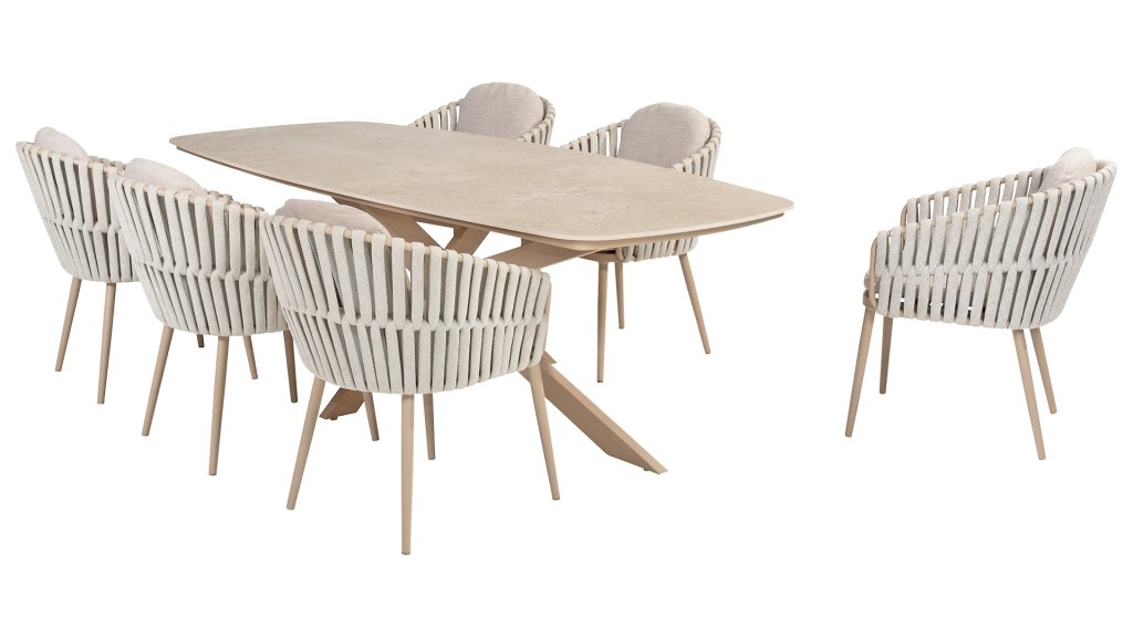 1 x Taste 4Seasons Prado Barrel Tisch Keramik-Alu Latte 240x105cm