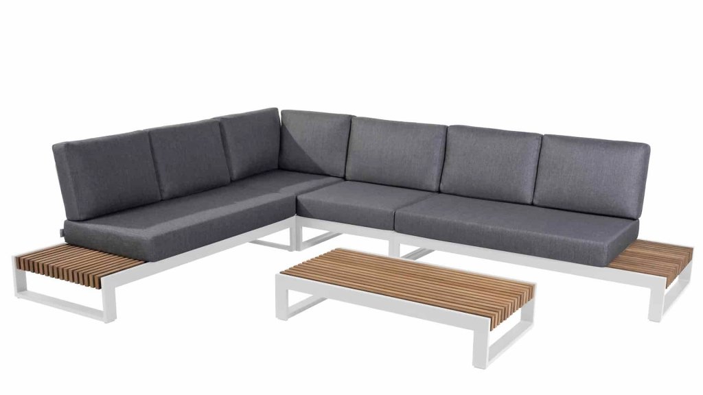 Das Gestell besteht aus pulverbeschichtetem Aluminium, in Kombination mit hochwertigen Teakplatten an der Seite. Die schmalen Lamellen des Teakholzes fallen sofort ins Auge. Durch die offenen Seiten mit Teakholzplatte haben Sie Ihr Getränk immer griffbereit! Die Kissen im Taste 4Seasons Kyoto Lounge Set sind sehr bequem und haben eine schmutz- und wasserabweisende Beschichtung, die sie widerstandsfähig gegen einen Regenschauer macht.