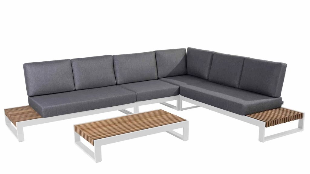 Das Gestell besteht aus pulverbeschichtetem Aluminium, in Kombination mit hochwertigen Teakplatten an der Seite. Die schmalen Lamellen des Teakholzes fallen sofort ins Auge. Durch die offenen Seiten mit Teakholzplatte haben Sie Ihr Getränk immer griffbereit! Die Kissen im Taste 4Seasons Kyoto Lounge Set sind sehr bequem und haben eine schmutz- und wasserabweisende Beschichtung, die sie widerstandsfähig gegen einen Regenschauer macht.