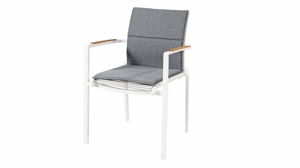 Der Dining Chair ist leicht und daher einfach zu stapeln und gegebenenfalls zu lagern. Durch die Armlehnen aus Teakholz lässt sich dieser Dining-Stuhl leicht mit verschiedenen Tischen aus unserer Taste 4SO-Kollektion kombinieren.