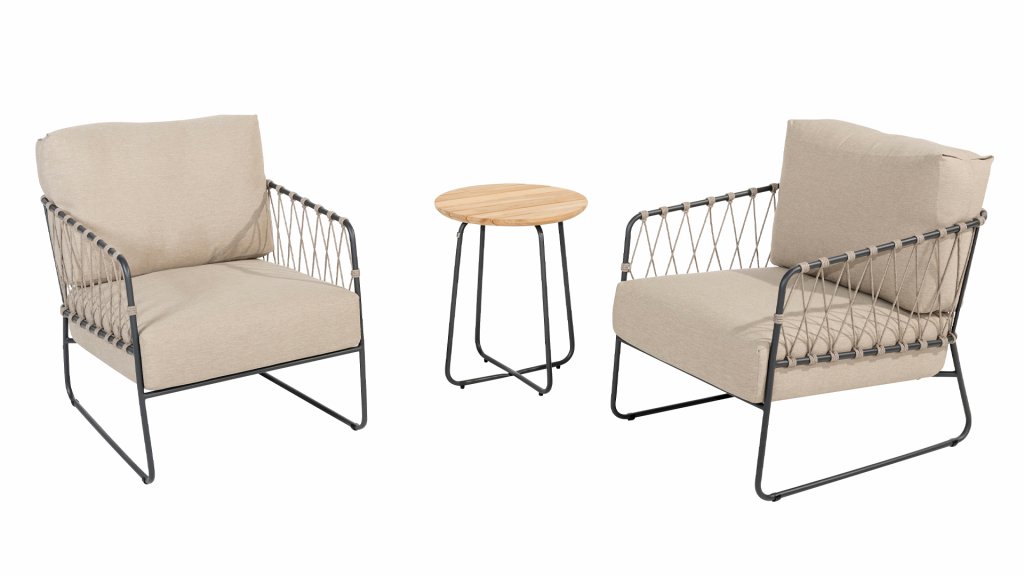 Die Prego-Lounge von Taste by 4Seasons besteht aus taupefarbenem Seil und verfügt über einen stilvollen anthrazitfarbenen Rahmen, der nicht nur langlebig ist, sondern Ihrem Außenbereich auch eine moderne Note verleiht. Mit den mitgelieferten Kissen können Sie stundenlang in Luxus und Komfort entspannen. Mit der Taste 4SO Prego Lounge genießen Sie die perfekte Kombination aus Ästhetik und Komfort. Verwandeln Sie Ihren Außenbereich mit dieser modernen Lounge in eine Oase der Entspannung.