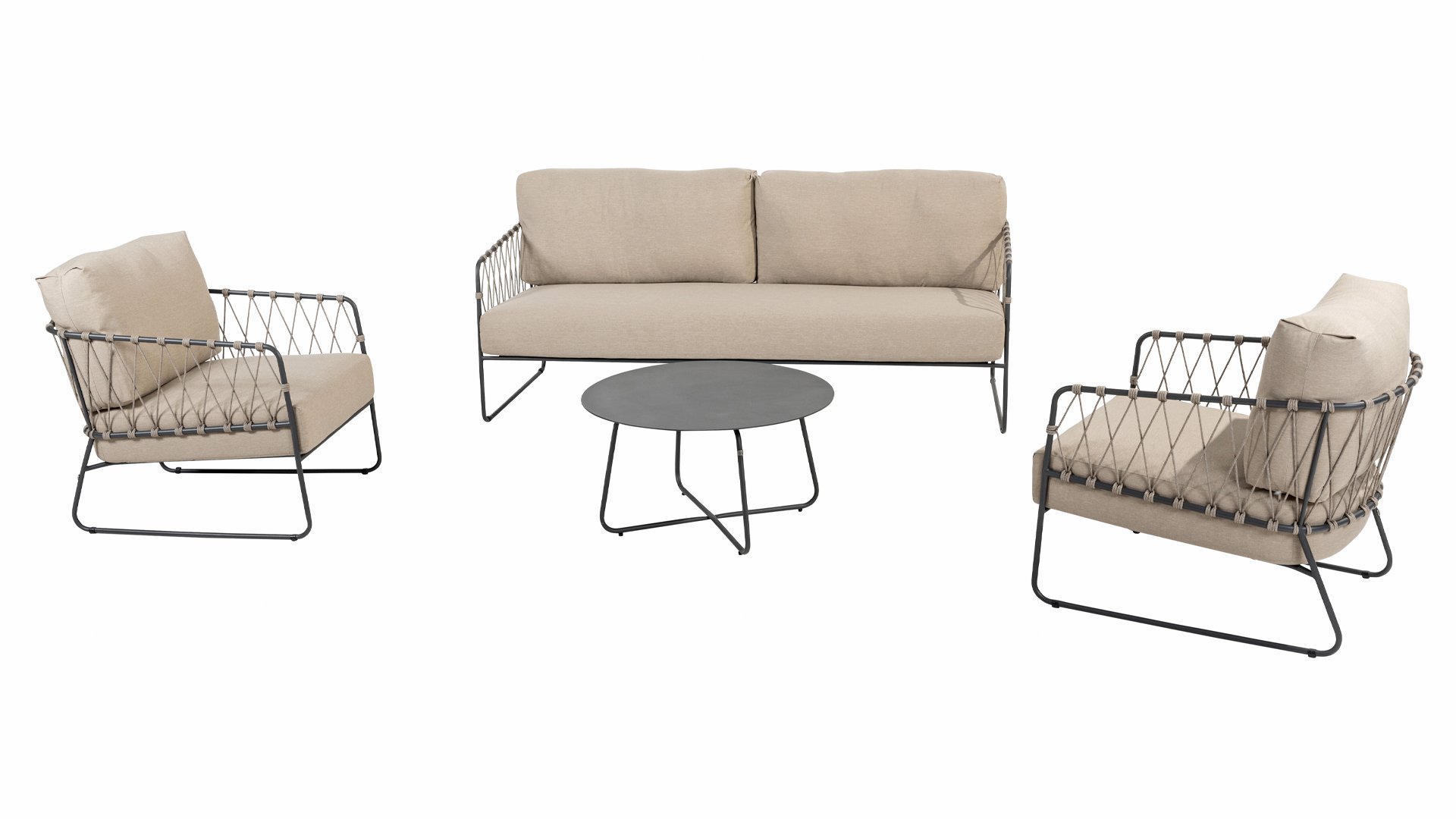 | Materialien Loungegruppe | Rope, Pulverbeschichtet Aluminium/Stahl |