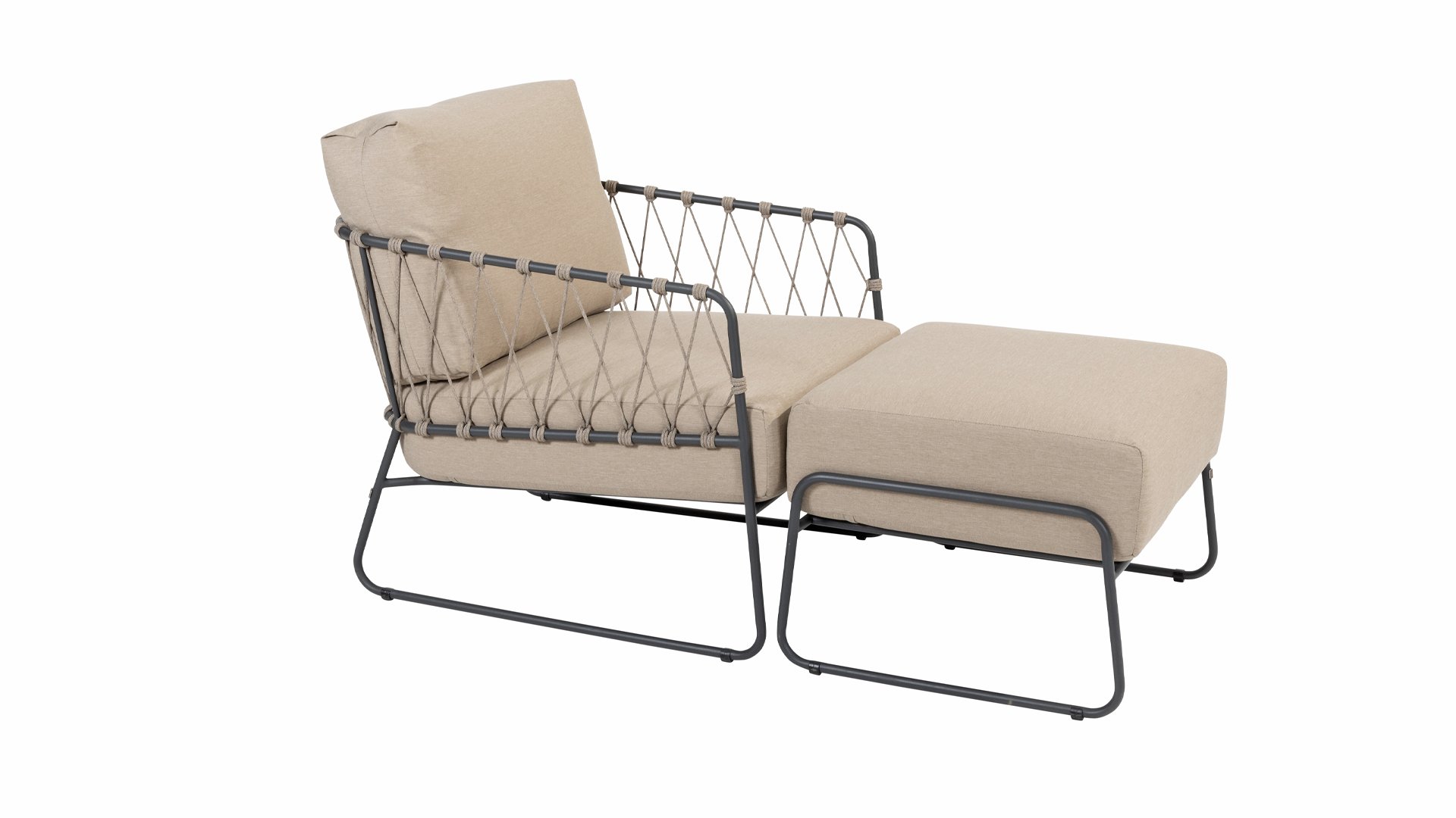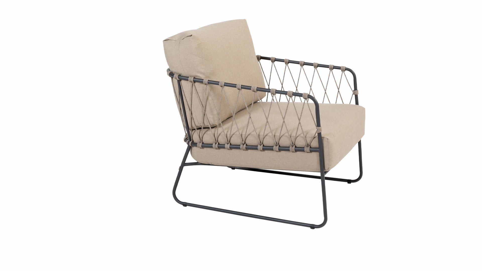 Die Prego-Lounge von Taste by 4Seasons besteht aus taupefarbenem Seil und verfügt über einen stilvollen anthrazitfarbenen Rahmen, der nicht nur langlebig ist, sondern Ihrem Außenbereich auch eine moderne Note verleiht. Mit den mitgelieferten Kissen können Sie stundenlang in Luxus und Komfort entspannen. Mit der Taste 4SO Prego Lounge genießen Sie die perfekte Kombination aus Ästhetik und Komfort. Verwandeln Sie Ihren Außenbereich mit dieser modernen Lounge in eine Oase der Entspannung.