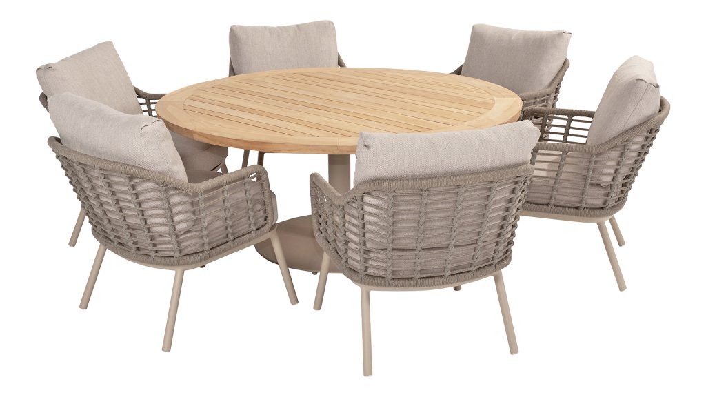 Was ist ein Low Dining Tisch? Auf den ersten Blick ein normaler Esstisch, aber wie der Name schon sagt, etwas niedriger. Durch die niedrigere Sitzhöhe sitzen Sie etwas entspannter, eine ideale Umgebung, um stundenlang gesellig zu tafeln. Ein Low Dining Esstisch bietet das Beste aus beiden Welten: Platz für ein ausgedehntes Barbecue und eine entspannte Sitzmöglichkeit für das Loungegefühl. Ein Taste 4SO Saba Low Dining Tisch kann aufgrund seiner spezifischen Höhe nur mit Low Dining Stühlen kombiniert werden. Denken Sie dabei an die Latte Low-Dining Stühle von 4 Seasons Outdoor. Mit diesen Modellen ist das Verhältnis perfekt. Erhältlich in den Größen Ø130cm, Ø160cm und den Farben Antraciet und Latte: