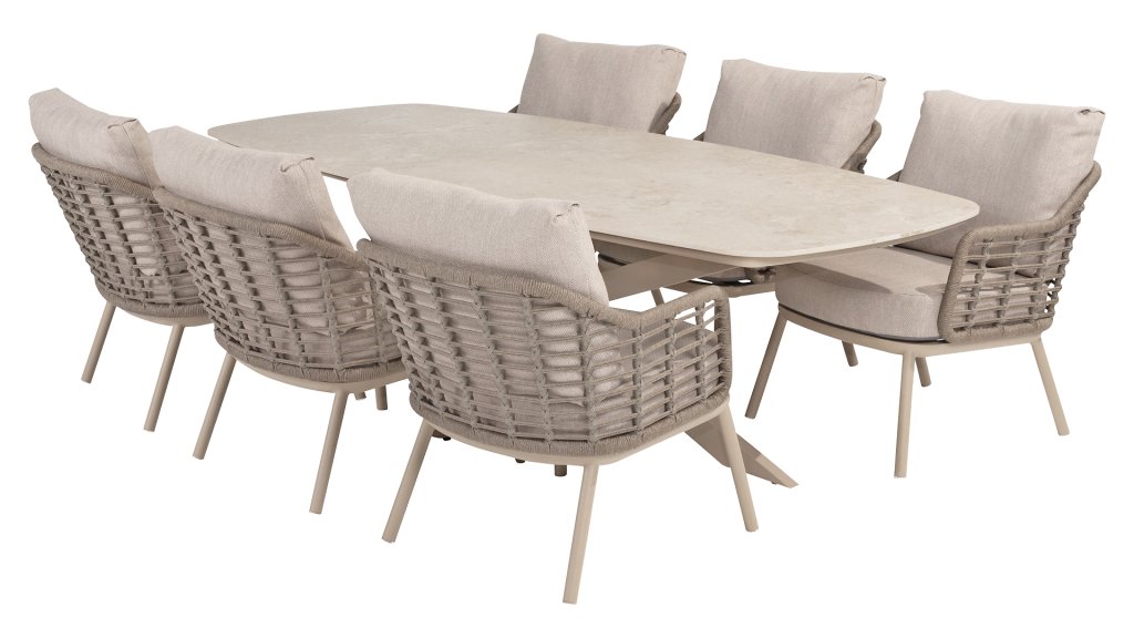 1 x 4Seasons Nevada Low Dining Barrel Tisch Alu Latte-Keramik 250x105xH70cm