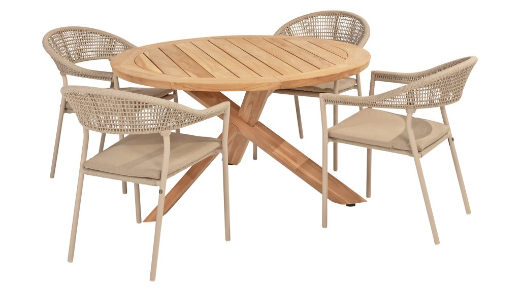 Das Flaggschiff der Kollektion, so kann man diesen Tisch ruhig bezeichnen. Das hochwertige Teakholz in Kombination mit dem schönen Kreuzfuß machen diesen Taste by 4Seasons Prado Ø130cm Tisch zu einem Schmuckstück. Er lässt sich mit nahezu jedem Esszimmerstuhl aus unserer Kollektion kombinieren, sodass für jeden Geschmack etwas dabei ist. Optional kann er mit Prado Lazy Susan kombiniert werden. Die Platte ist sowohl in Teakholz als auch in Keramik erhältlich.