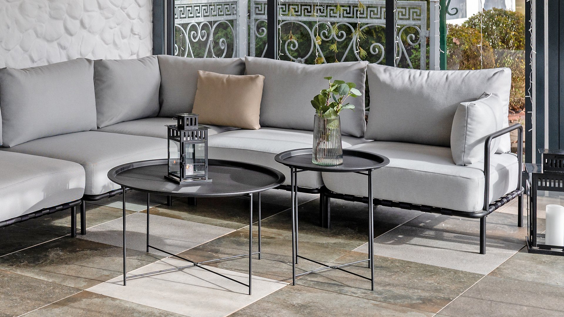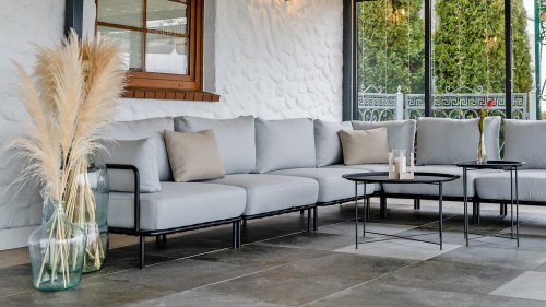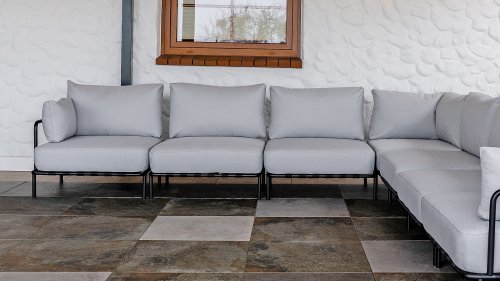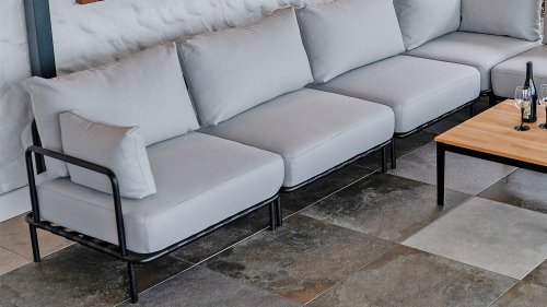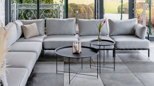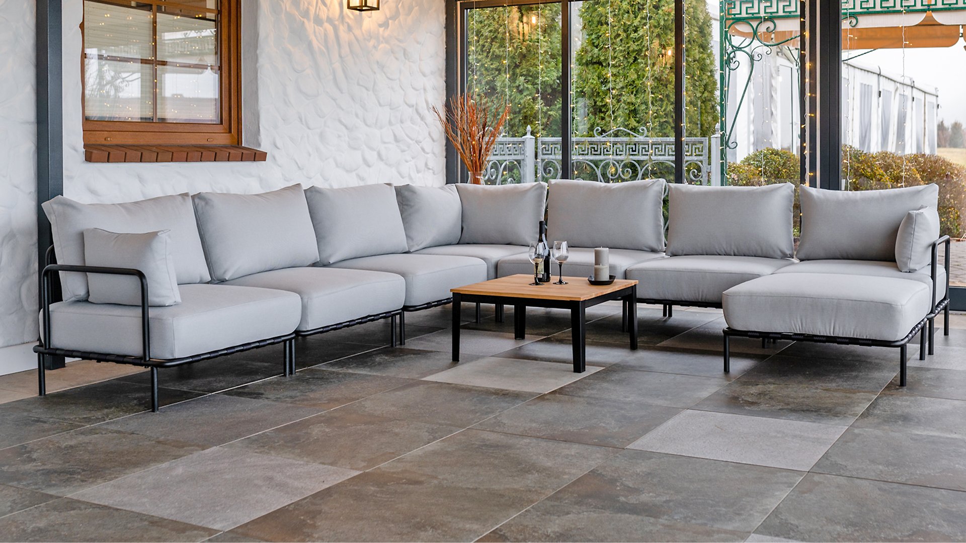 Die Bezüge bestehen aus Outdoor-Stoffen, die allen Wetterbedingungen standhalten. Die Stoffe sind durchgefärbt, was sie vor dem Verblassen durch UV-Strahlen schützt und ihre Farbe lange erhält. Mit Fluorkohlenstoffbeschichtung - wasserabweisend (Schutz vor Feuchtigkeit) und dadurch flecken- und schimmelfest.