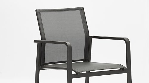 Der Zebra Greenline Bee Gartenstuhl stapelbare Serie. Erhältlich in den folgenden Ausführungen: Zebra Bee Graphit Alu-Arm, Zebra Bee Graphit Teak-Arm & Zebra Bee Weiß Teak-Arm. Die Rahmen sind pulverbeschichtetes Aluminium in Graphit- oder Weißfarbe. Das verwendete Textilene ist Batyline®-Gewebe, ein bewährter synthetischer Stoff, der atmungsaktiv und reißfest ist für mehrere Jahre. Bei den Graphitstühlen ist die Farbe davon Carbon Grey, die weiße Version enthält die Farbe Light Grey.