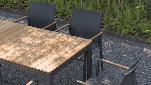Aluminium ist sehr wartungsfreundlich und leicht. Diese praktischen Möbel sind leicht zu reinigen. Unser Aluminium mit einer festen Pulverbeschichtung ist witterungsbeständig und UV-beständig. Aluminium ist nicht rostanfällig, zeitlos und stilvoll.