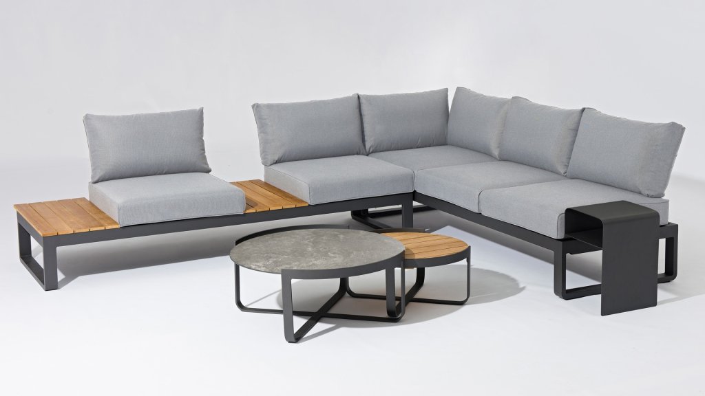 Das Lounge-Set Fly Lounge der Marke Zebra besteht aus einem 3- und einem 2-Sitzer mit Teak-Ablagen, die mit dem zusätzlichen Rückenkissen-Set lückenlos über Eck kombiniert werden können und so eine gemütliche Sofalandschaft bilden. Als Ablagefläche ist das hochwertige 2er-Tischset und ein zusätzlicher Beistelltisch aus Aluminium im Lieferumfang enthalten. Die gelungene Materialkombination aus Aluminium, Teakholz und Glas-Keramik zusammen mit den komfortablen Polstern verleihen Ihrem Außenbereich ein modernes und wohliges Ambiente. Die Möbel überzeugen durch eine hochwertige Verarbeitung, hohen Komfort und Design. Alles passt perfekt zusammen und bildet eine geschmackvolle Einheit, die zum Wohlfühlen einlädt. Sie können dieses Zebra Fly 3-Sitzer-Sofa auch als separate Liege oder als wunderbaren Liegeplatz in Ihrem Lounge-Set verwenden, da Sie den linken oder rechten Sitz als verstellbare Rückenlehne verwenden können.