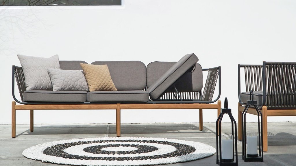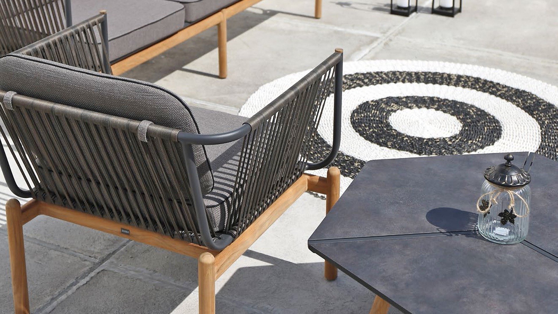 | Materialien Loungegruppe | Rope, Teak, Pulverbeschichtet Aluminium/Stahl |