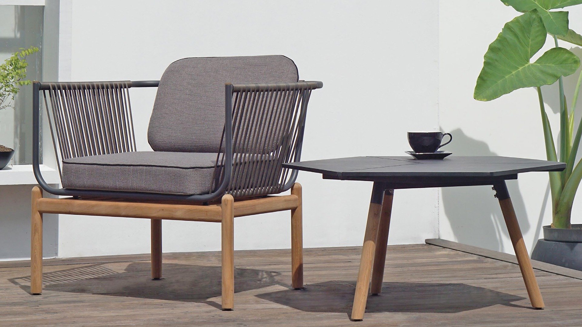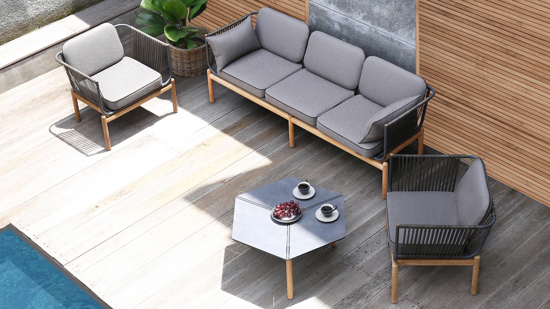 | Materialien Loungegruppe | Rope, Teak, Pulverbeschichtet Aluminium/Stahl |