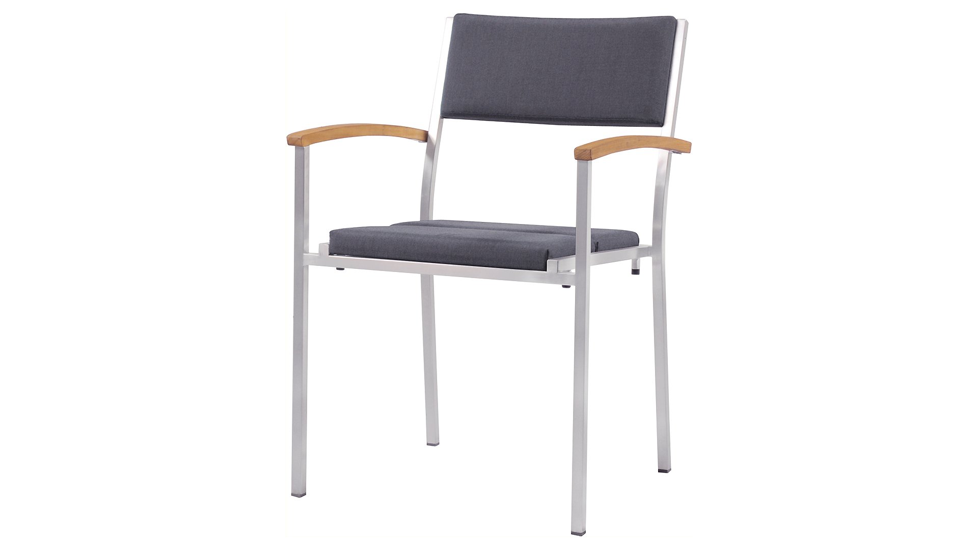 Die Zebra Greenline Quadux Gartenstuhlserie stapelbar. Der Rahmen aus gebürstetem Edelstahl ist mit einem rauchfarbenen Sunbrella®-Stoff bezogen. Das verwendete SunbrellaTextilene ist ein bewährtes synthetisches Gewebe, das atmungsaktiv und über mehrere Jahre reißfest ist. Die Greenline-Serie von Zebra vereint unter anderem Zeitgenössisches, Ökologie und Nachhaltigkeit. Im Unternehmenskonzept Greenline steht das Thema Nachhaltigkeit und die Auswahl umweltfreundlicher Materialien, die zu bequemen, formschönen, zeitlosen Möbeln verarbeitet werden.
