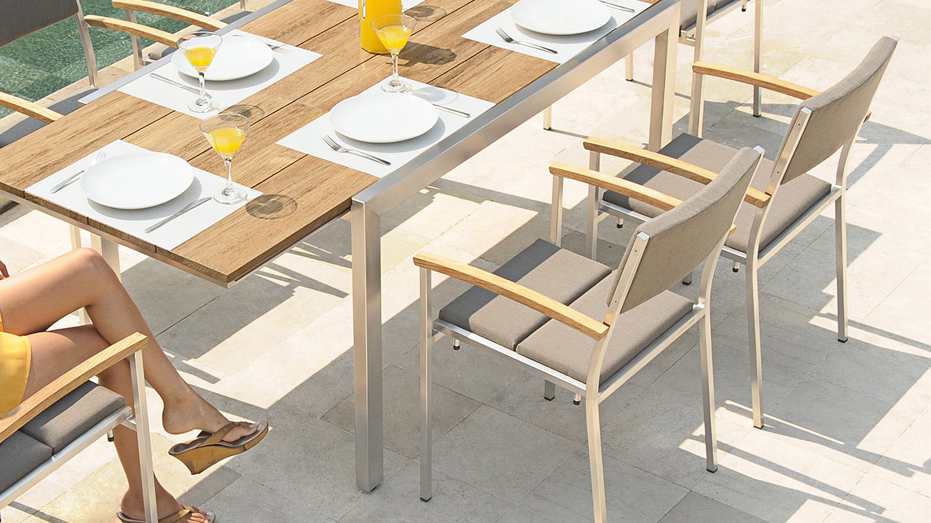 Generell ist Edelstahl ein hervorragend geeignetes Material zur Verarbeitung von Gartenmöbeln. Es ist wetterbeständig und benötigt nur geringe Pflege. Durch äußere Umwelteinflüsse kann sich jedoch Flugrost bilden. Dieser läßt sich leicht mit unseren Pflegemitteln entfernen.