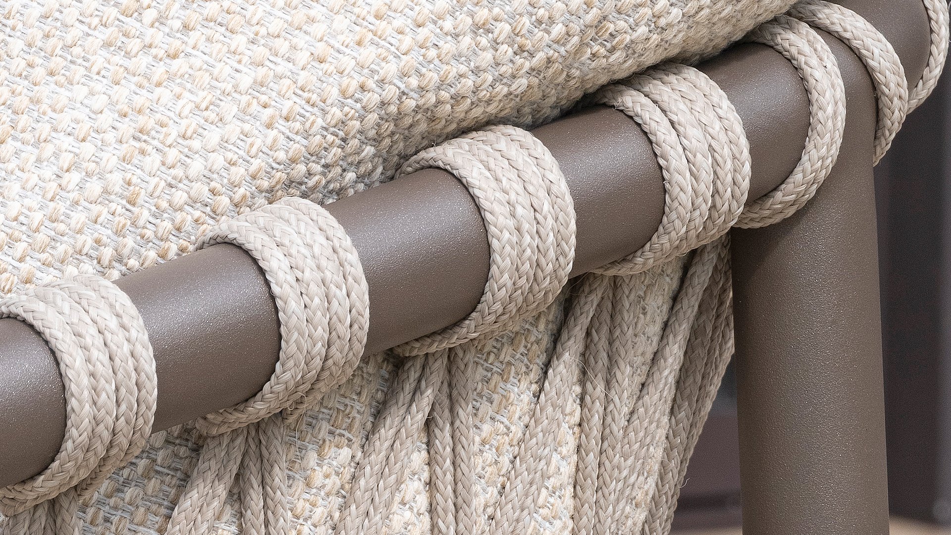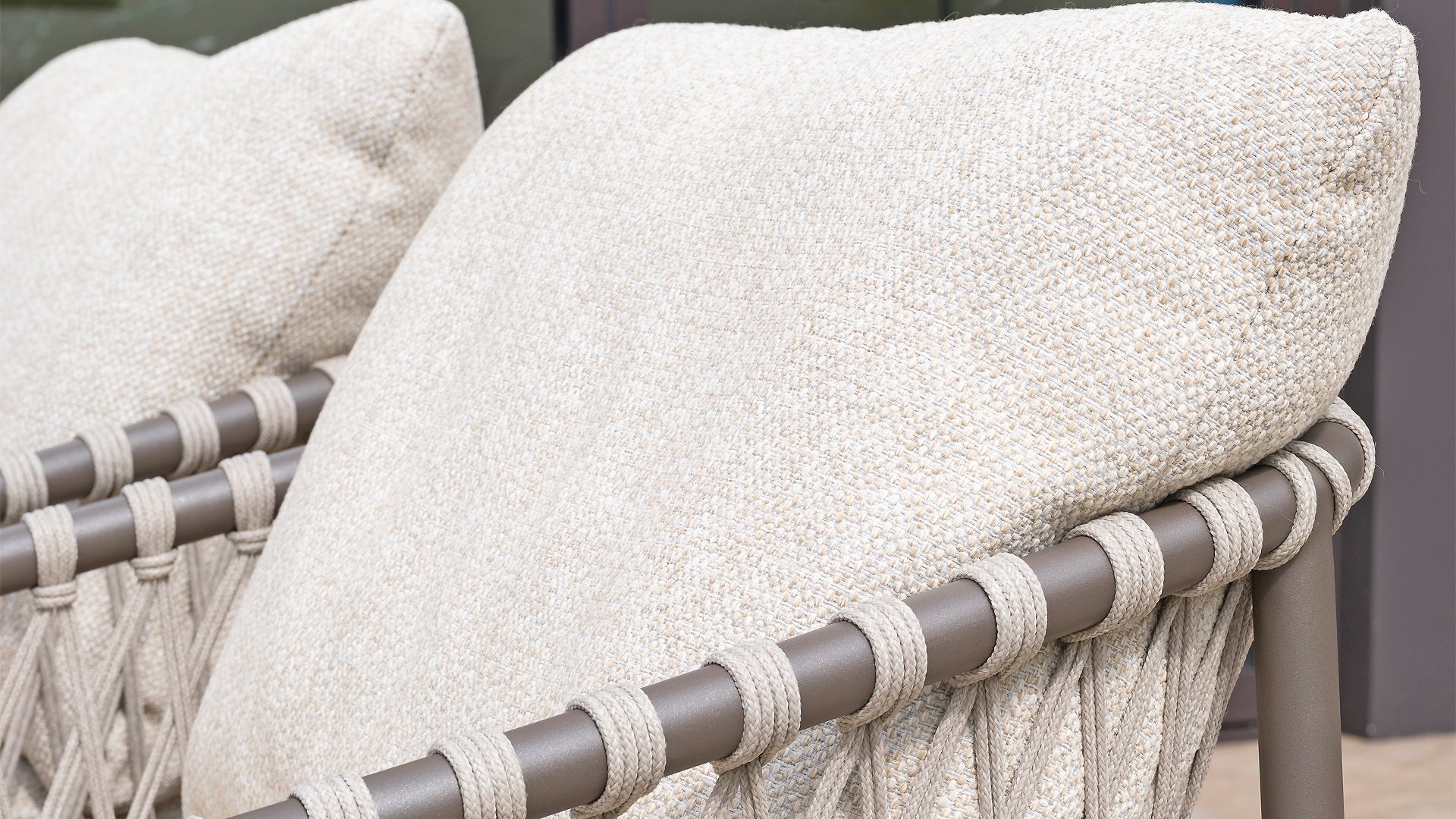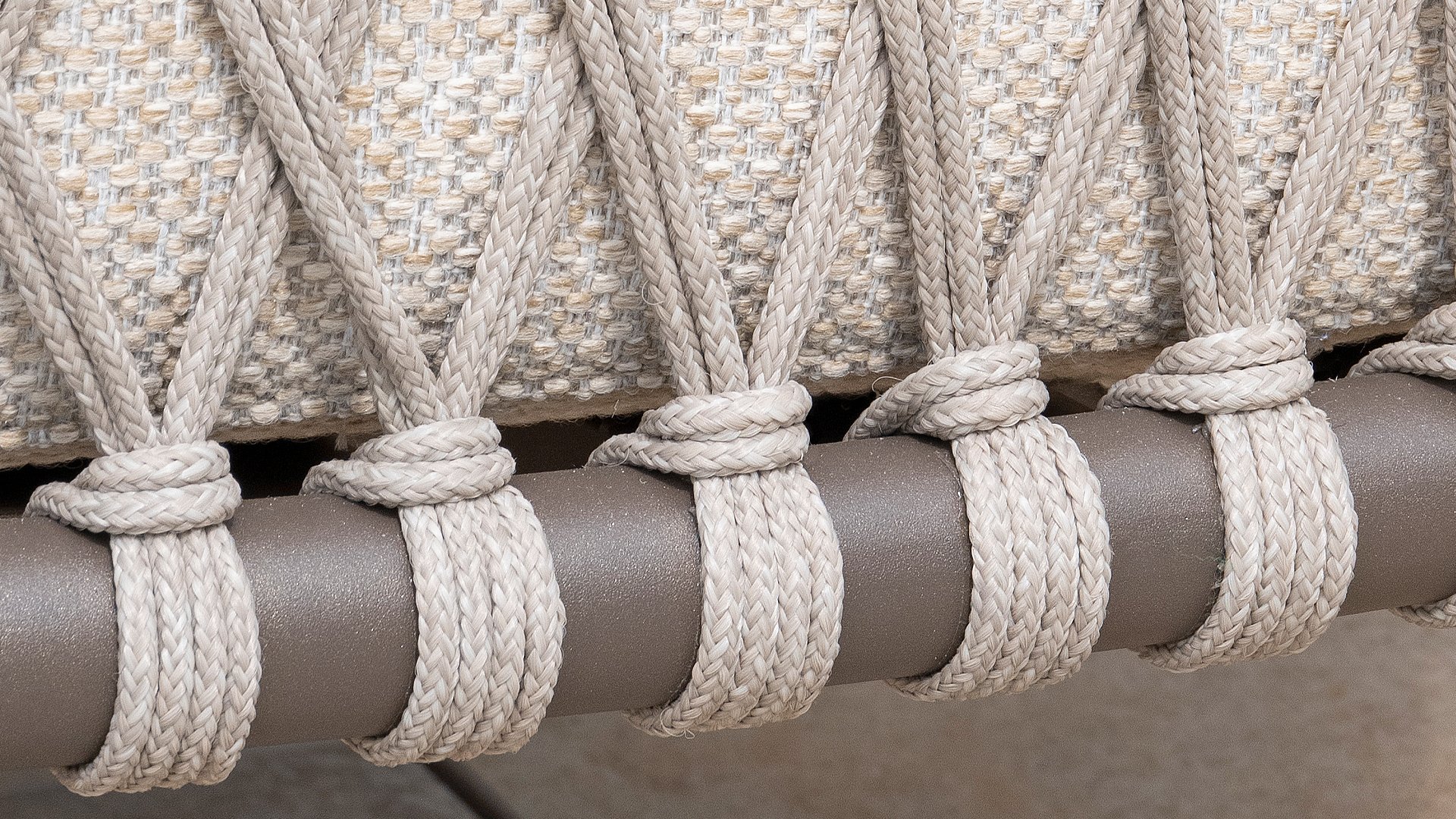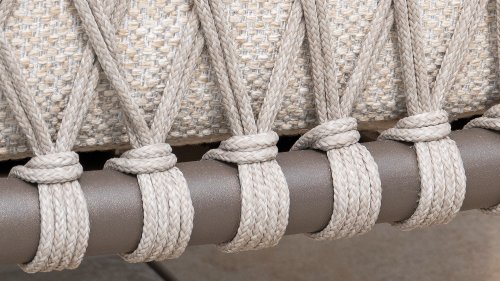 This beautiful material is perfect for outdoor use, because 4SO Rope is more than just a regular shoelace. 4Seasons uses very high-quality rope made from 100% SDP (Solution Dyed Polypropylene). This material is extremely strong and has a very low stretch percentage. Polypropylene is oil-based, so dirt and contaminants are virtually insoluble, just like our cushions. 4Seasons offers exclusive designs using hand-woven rope patterns and techniques.