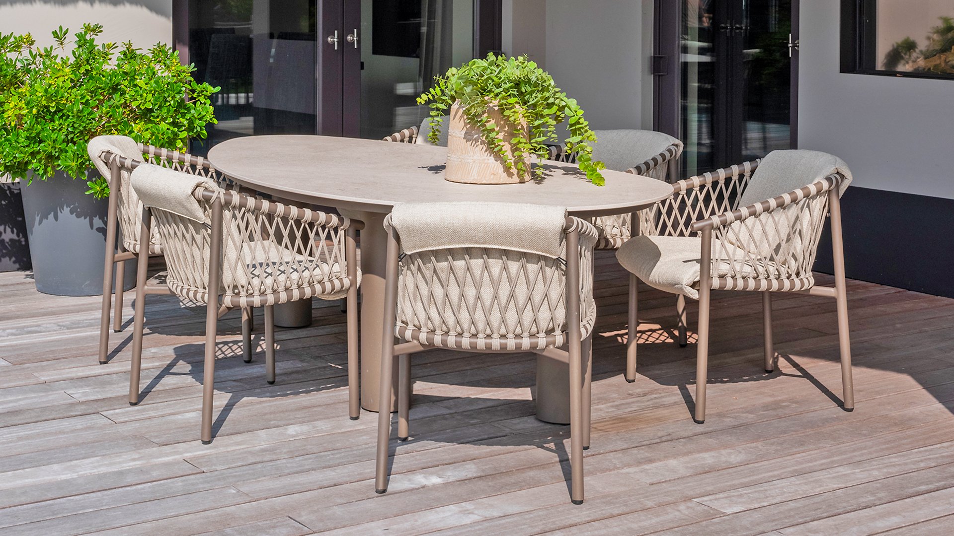 Aluminum is very easy to maintain and lightweight, just like our wickerwork. This practical furniture is easy to clean. Our aluminum, with its sturdy powder coating, is weatherproof and UV-resistant. Aluminum is rust-resistant and timeless and stylish.