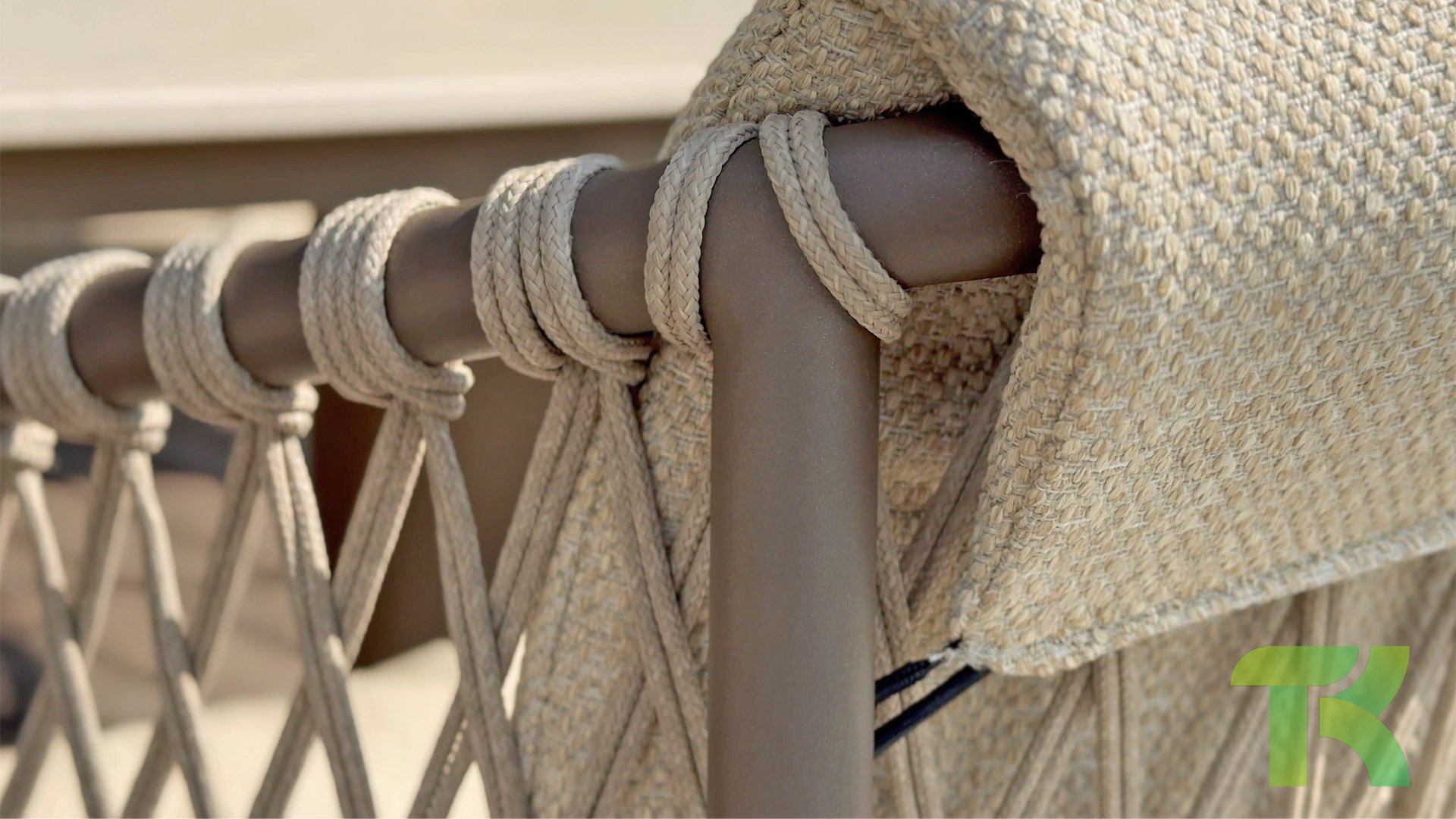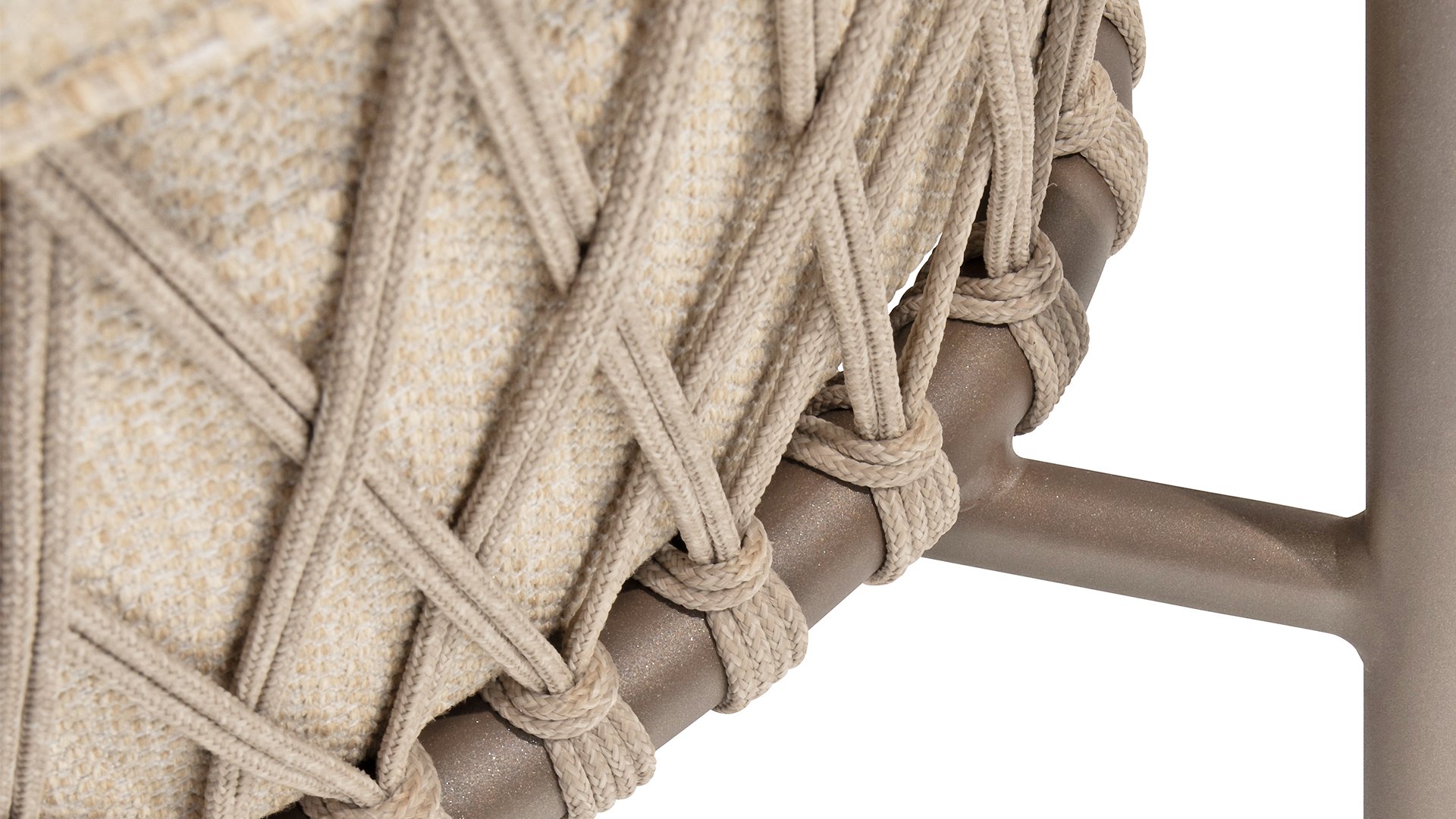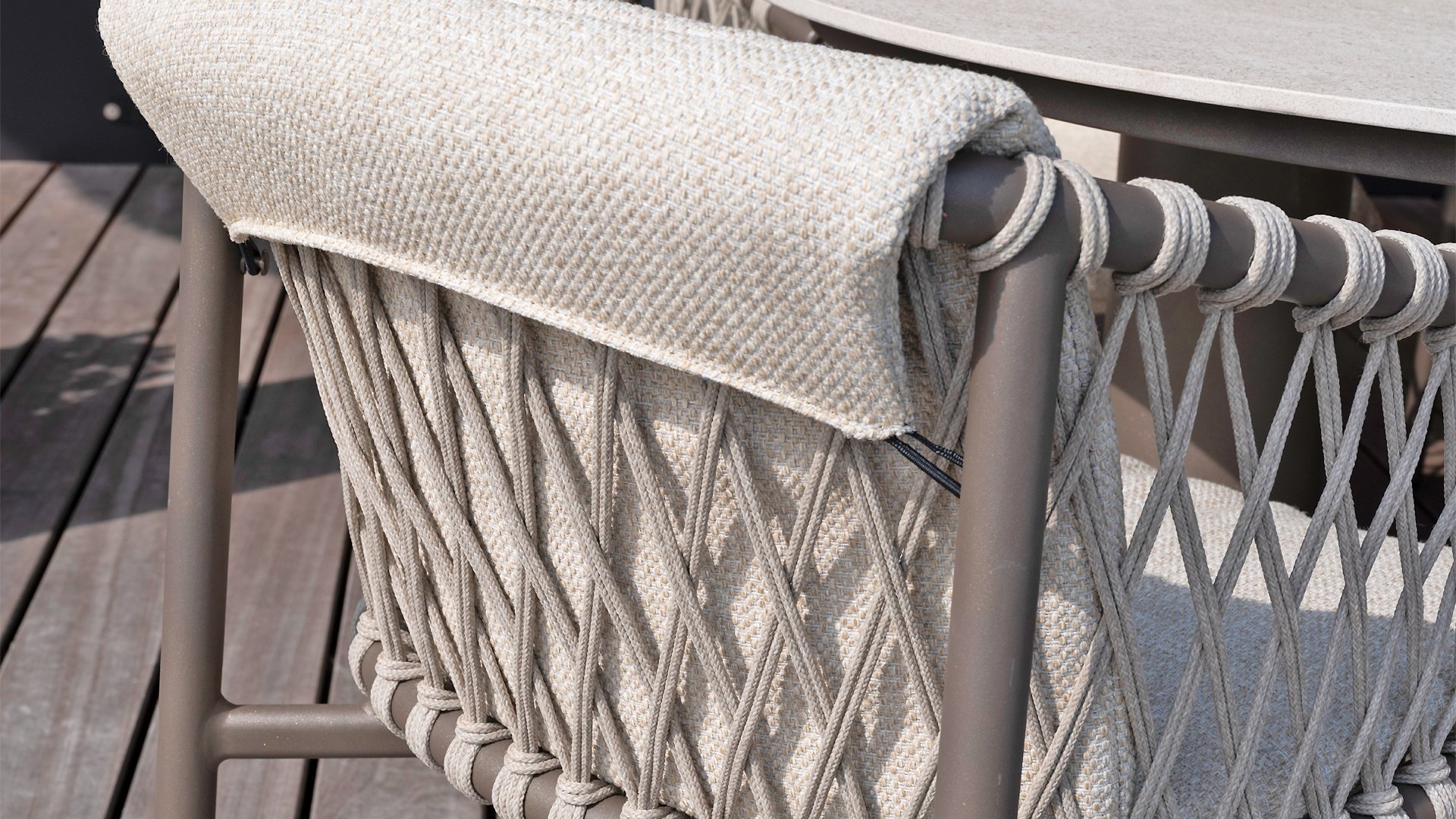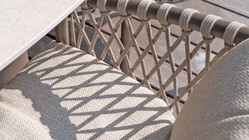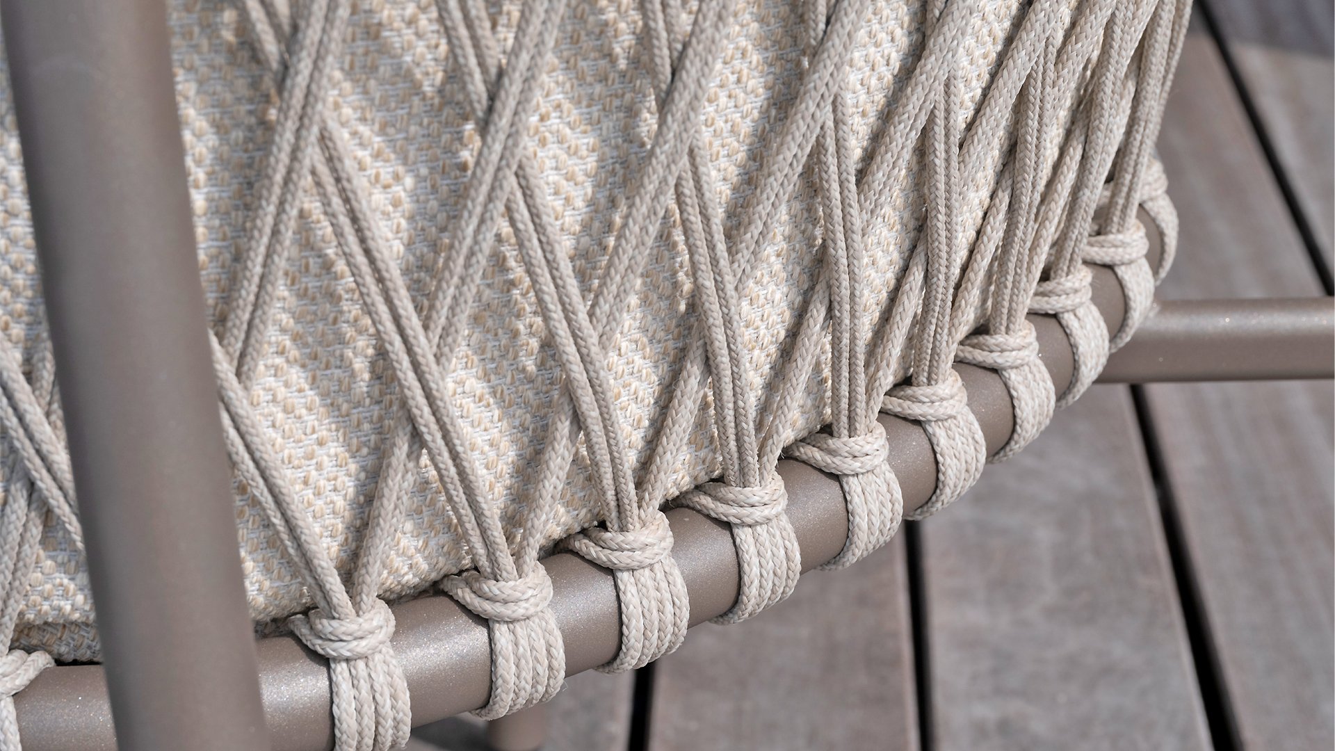 This beautiful material is perfect for outdoor use, because Taste Rope is not just any shoelace. Taste uses very high-quality rope made from 100% SDP (Solution Dyed Polypropylene). This material is extremely strong and has very little stretch. Polypropylene is oil-based, so dirt and contaminants are virtually insoluble, just like our cushions. Taste offers exclusive designs using hand-woven Rope patterns and techniques.