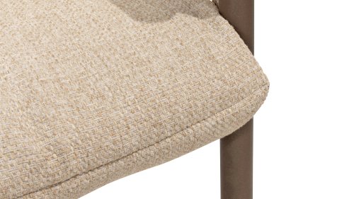 The fabric of the seat is made of Olefin, a synthetic material known for its strength and weather resistance. The Bouclé Clay upholstery adds a luxurious and soft texture that is both aesthetically pleasing and practical.