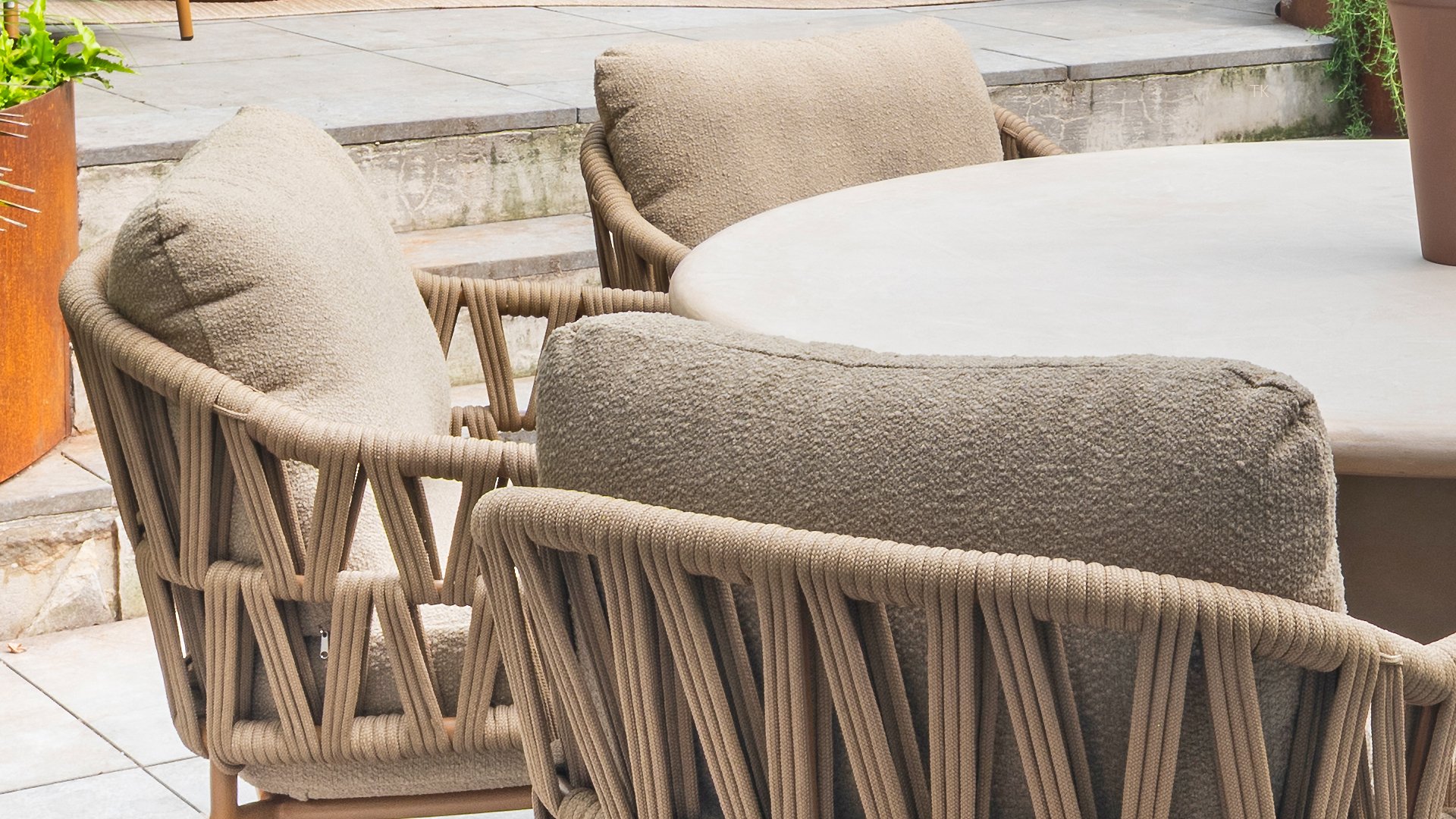 The extra-thick cushions, upholstered in soft bouclé fabric, provide unparalleled seating comfort, allowing you to enjoy hours of sunshine or relaxed evenings in your garden. The bouclé fabric not only adds a touch of luxury but also introduces a pleasant texture that invites you to unwind. These comfortable lounge models are designed for ultimate ease – whether you’re socializing with friends or quietly reading a book.