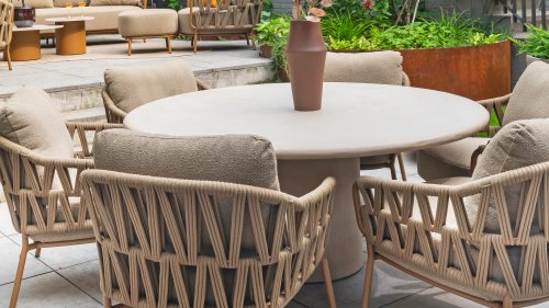 The soft cushions invite you to unwind, while the practical table height ensures a comfortable dining experience. The warm, sociable atmosphere lingers effortlessly, long after the plates have been cleared away.