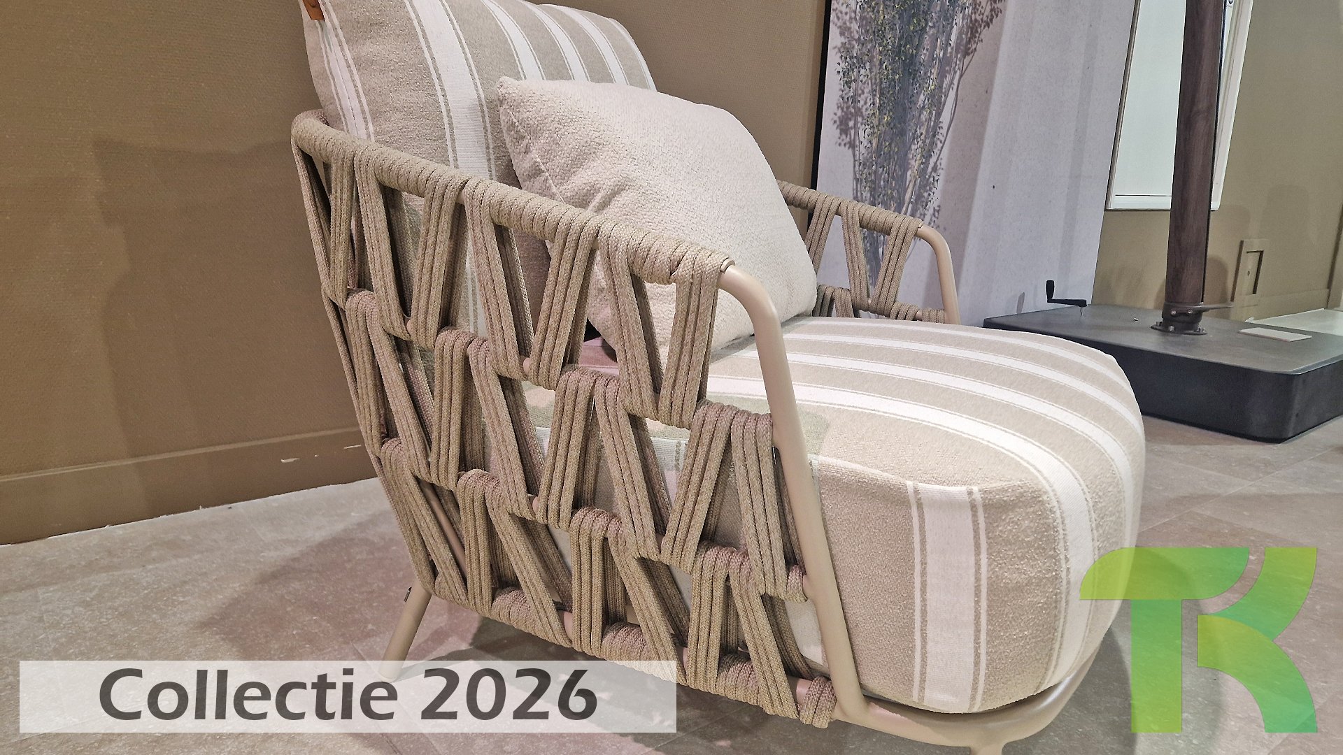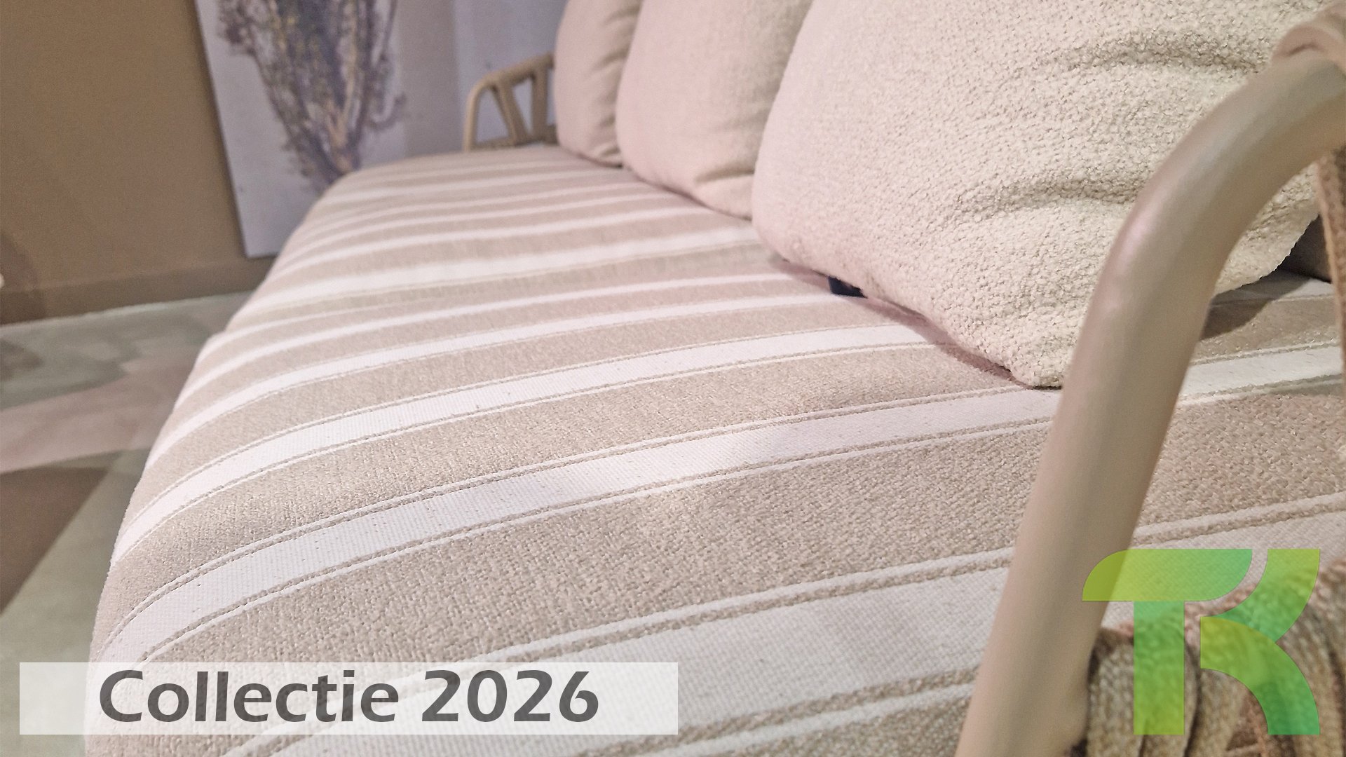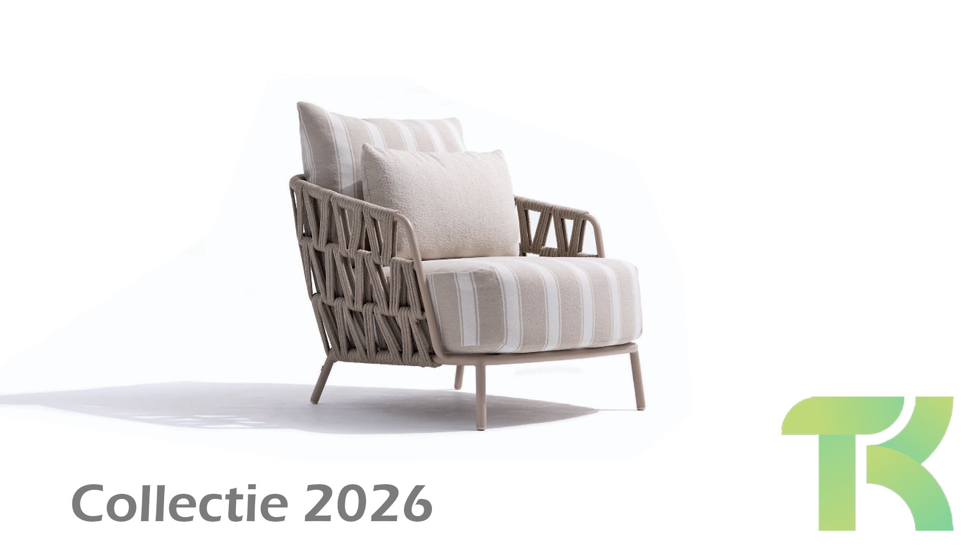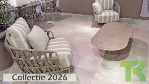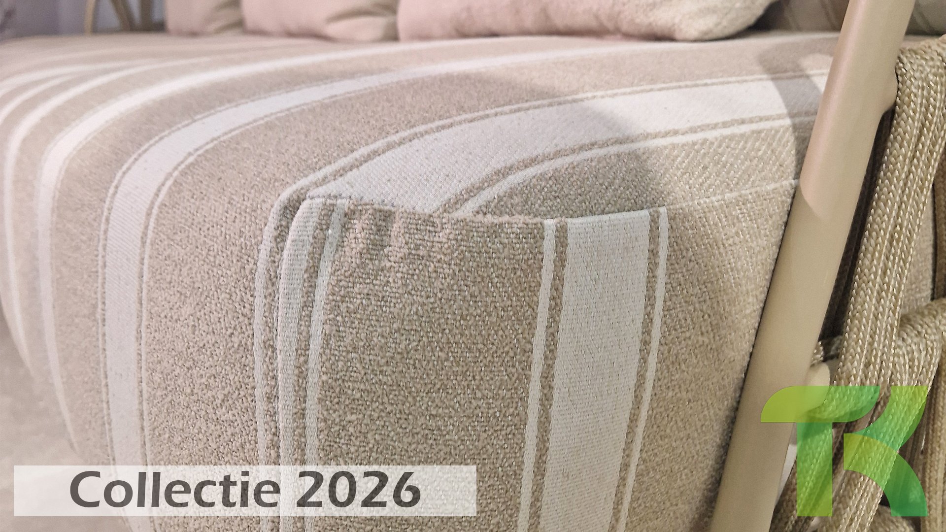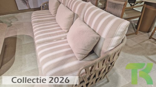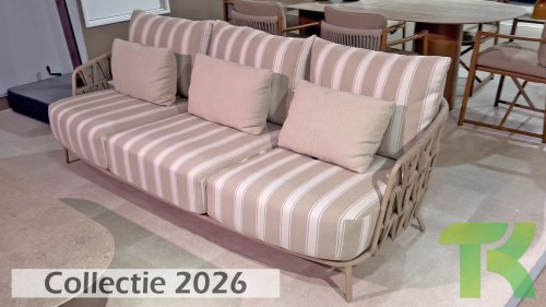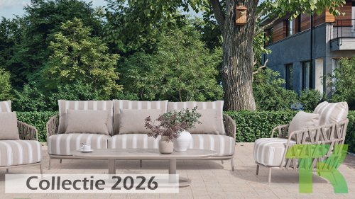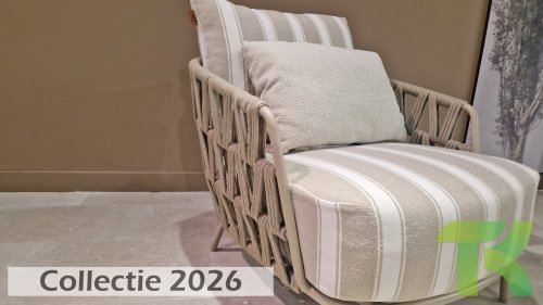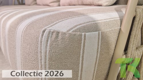 Extra thick, comfortable cushions in a stylish stripe design. The Olefin cushion covers are weatherproof, colorfast, and quick-drying — ideal for the Dutch climate.