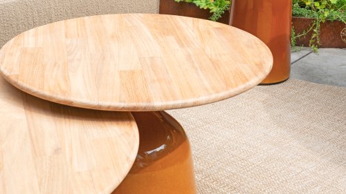 The 4 Seasons Outdoor June coffee table series is an ode to refined simplicity and natural luxury. With a rounded teak top and a striking high-gloss ceramic base, June combines warmth and a modern touch in a single, powerful design.