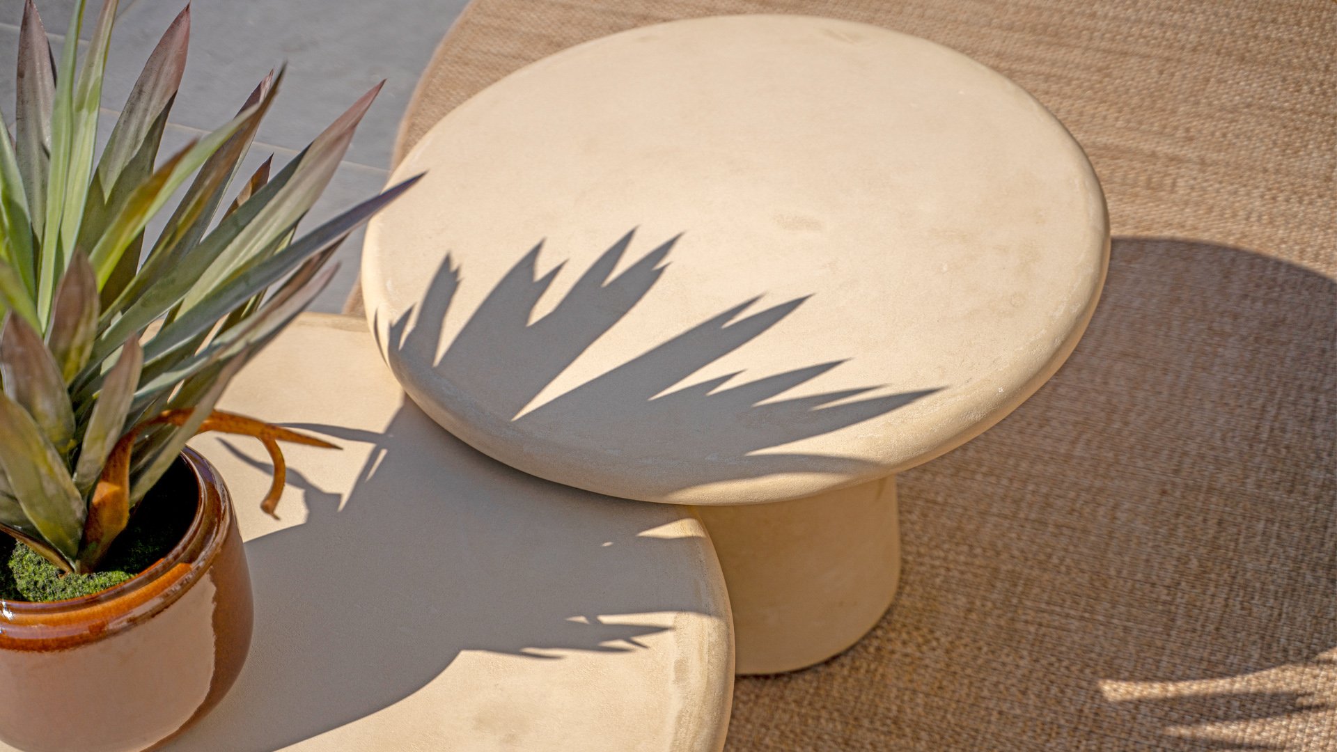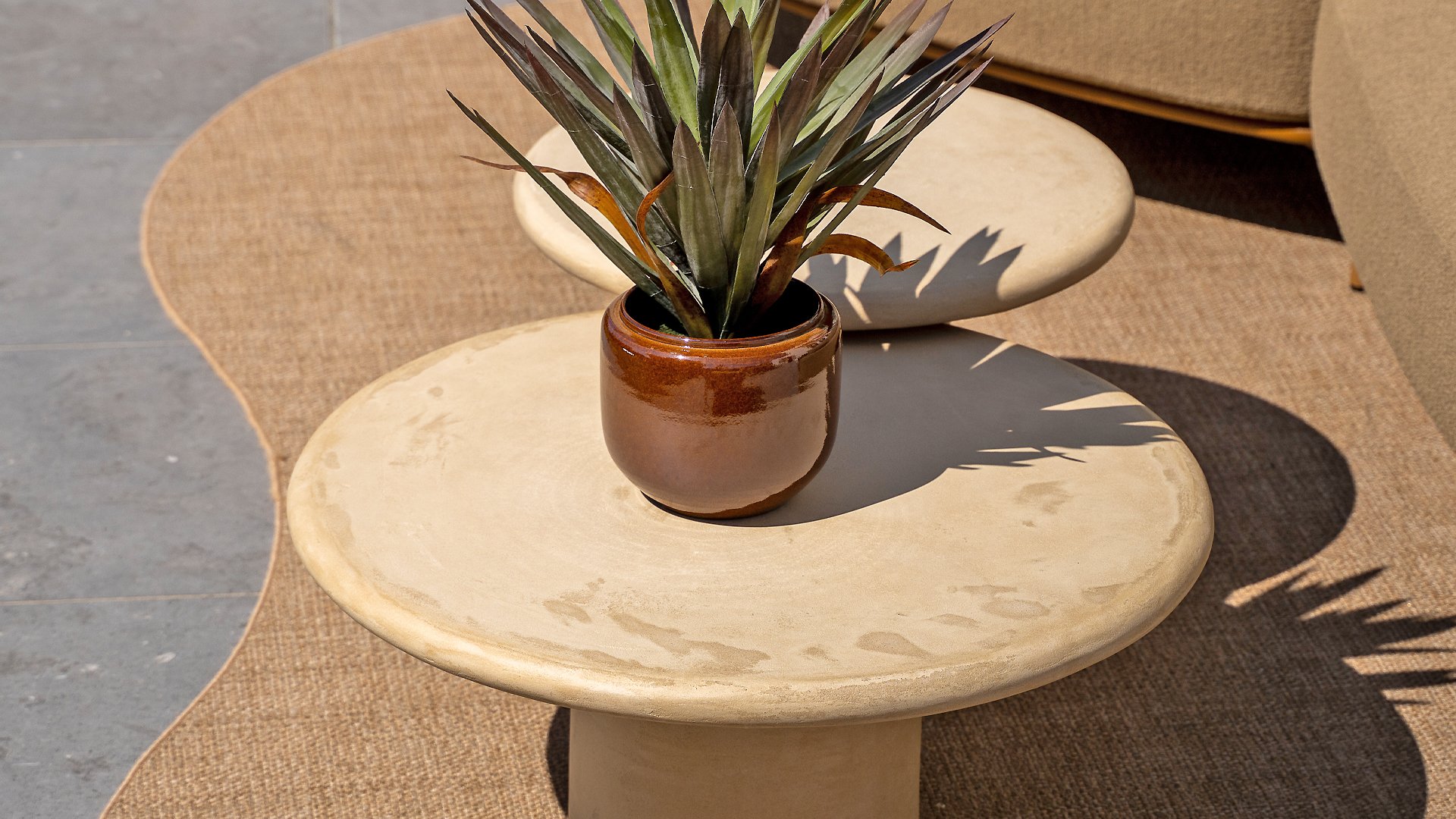 Mortex is made from a mixture of lime, cement, and fine mineral powders. Pigments and resins are added to this mixture to make it flexible, waterproof, and adhere well. It is applied by hand in thin layers and then sanded and finished with a protective sealer or wax. This creates a seamless, strong, and stylish surface suitable for furniture, floors, and walls, among other things. A Mortex garden table is weatherproof. Rain, sunlight, and temperature fluctuations have little effect on the material, provided the table is properly finished with a protective layer. It is important to be careful with acidic substances such as lemon juice, vinegar, or wine. If these remain on the surface for too long, they can damage the protective layer and cause stains.