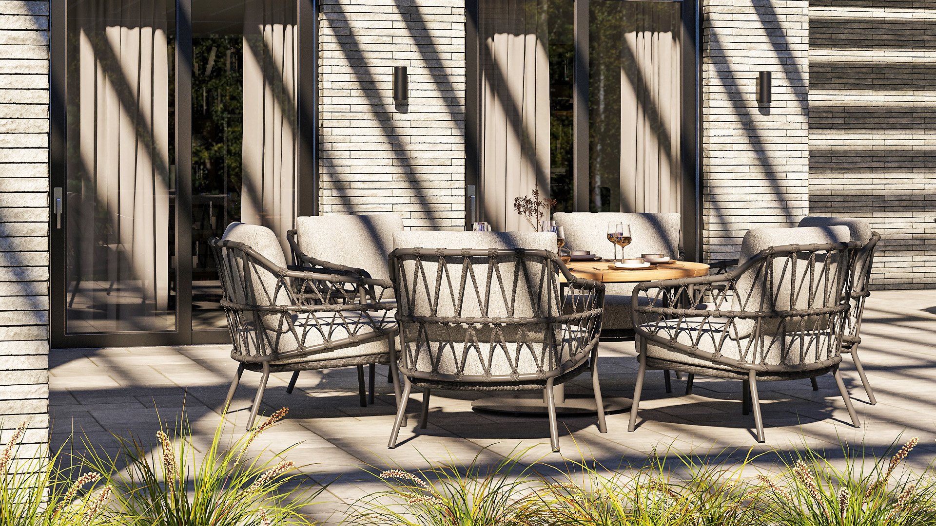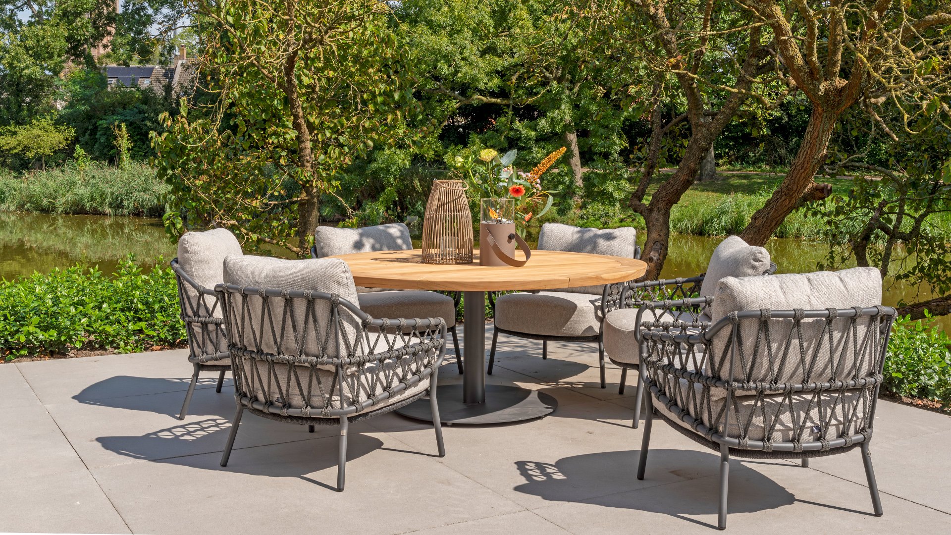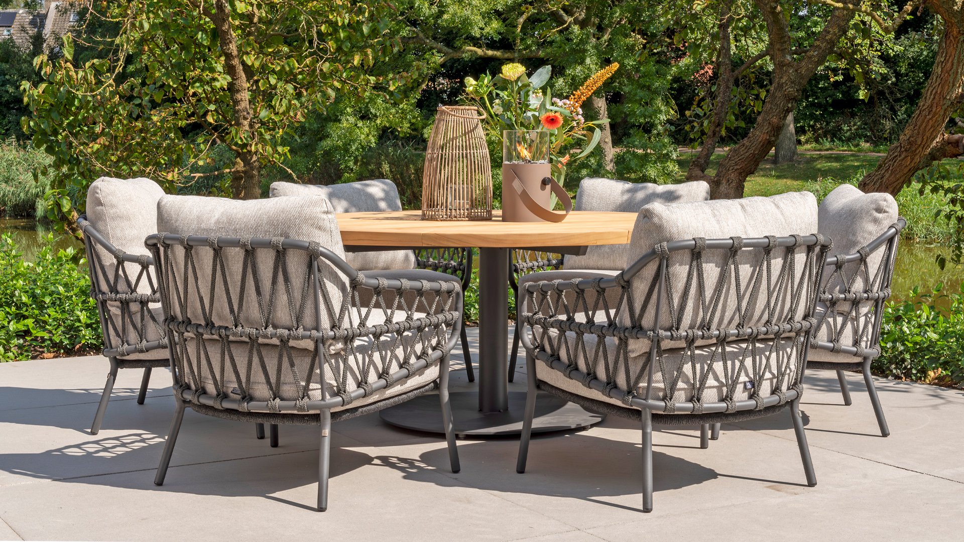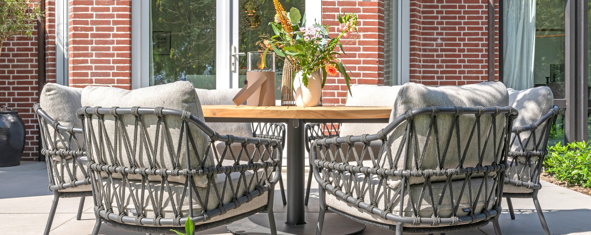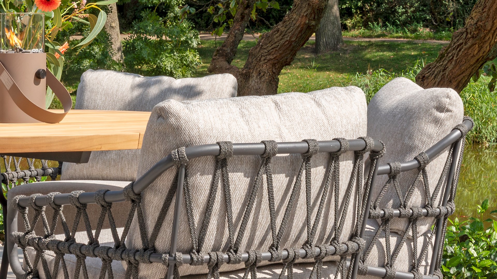 The Calpi series from 4 Seasons Outdoor has a contemporary design and gives every terrace the premium looks you are looking for. The wide rope sections are woven in an original way, giving the Calpi an open character. The 4Seasons Calpi comes with cushions in an all-weather fabric. This fabric has a water and dirt repellent effect, making it resistant to various weather conditions.
