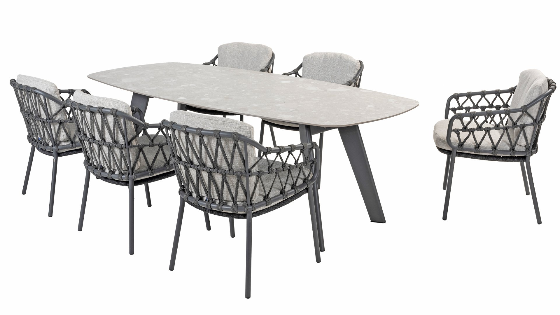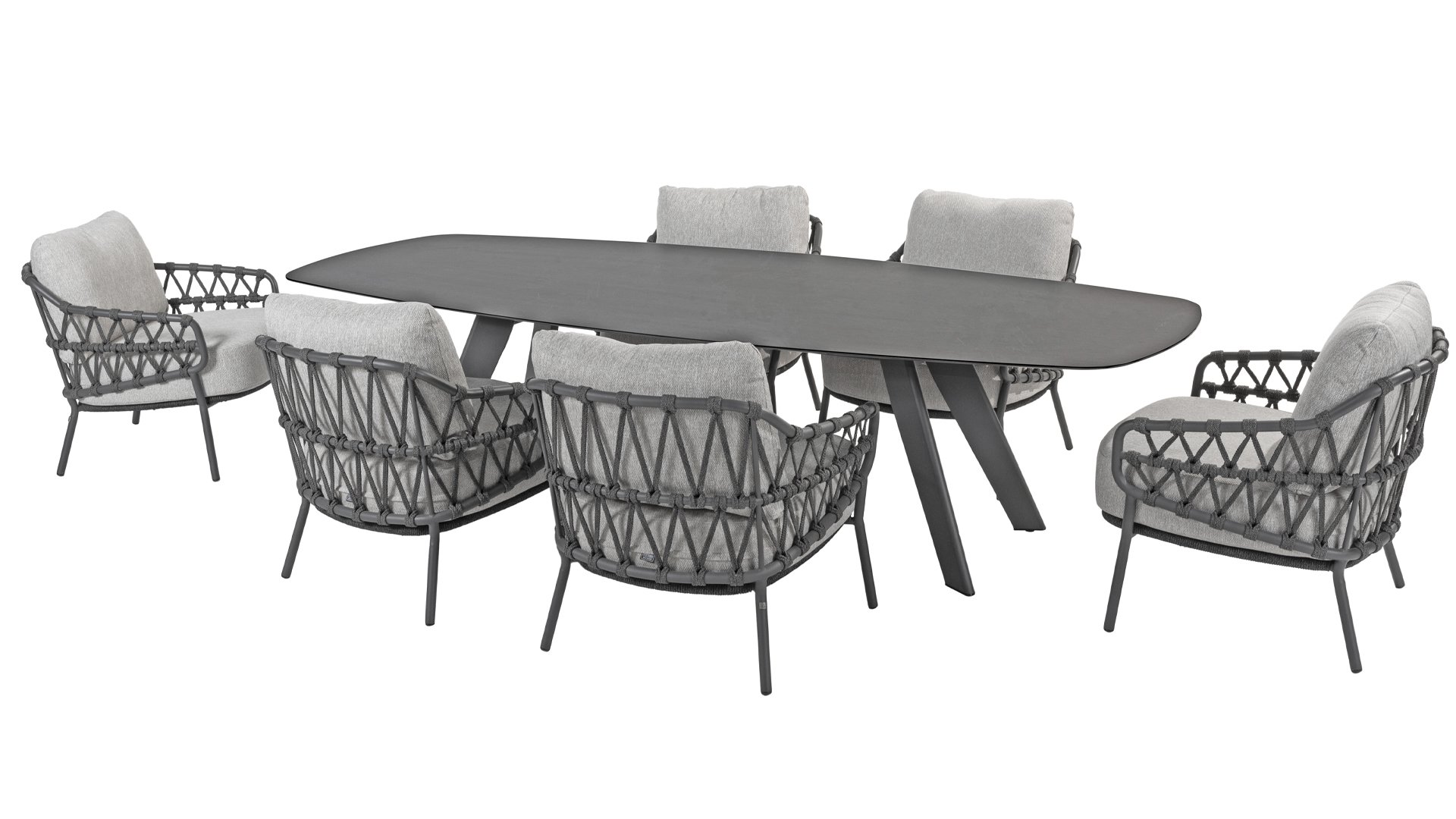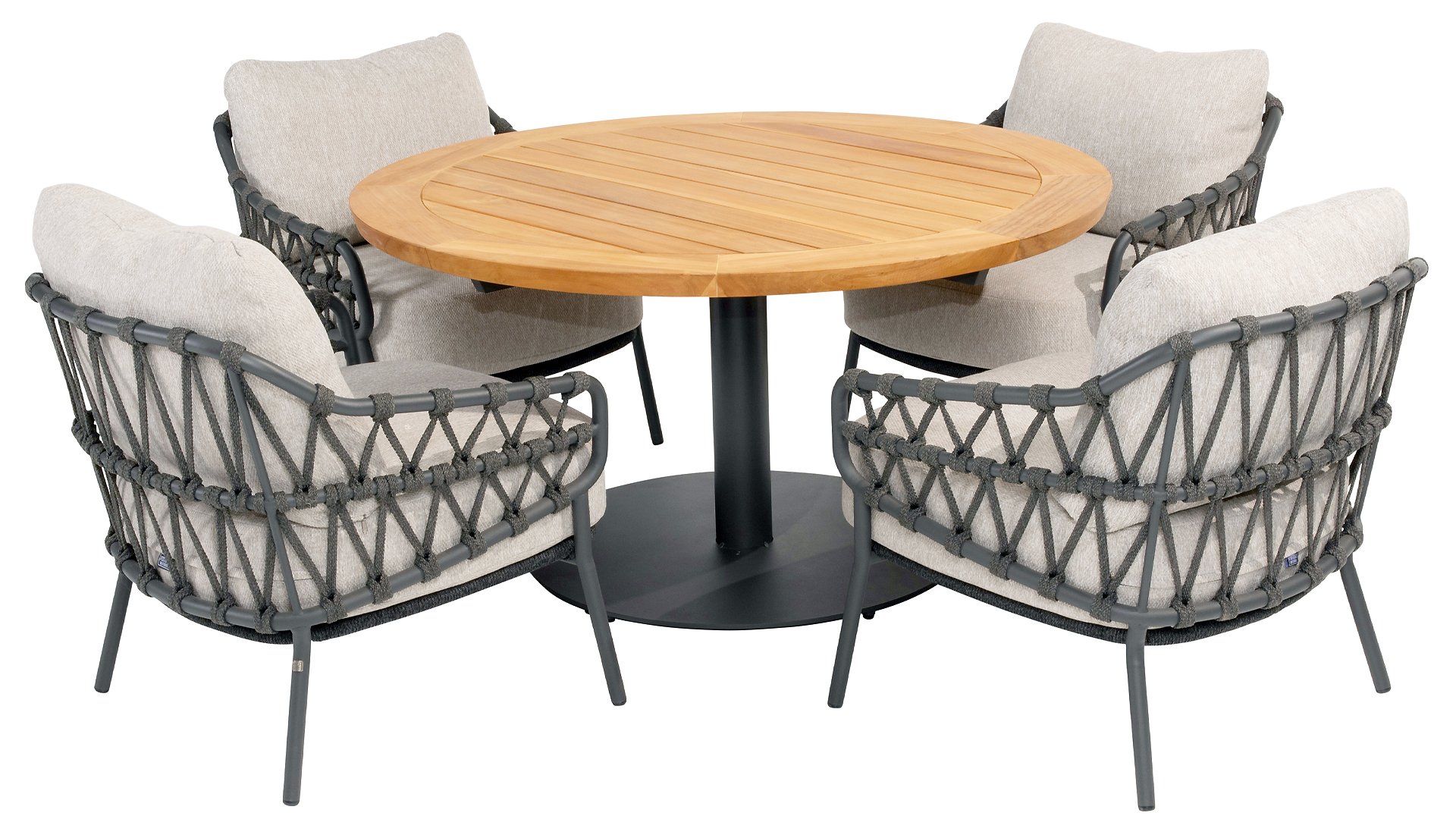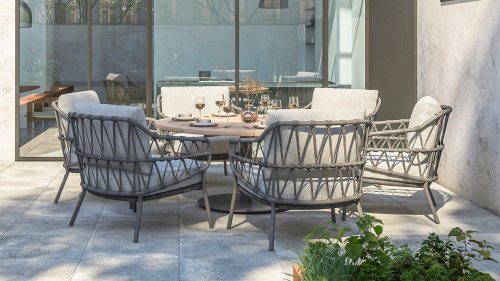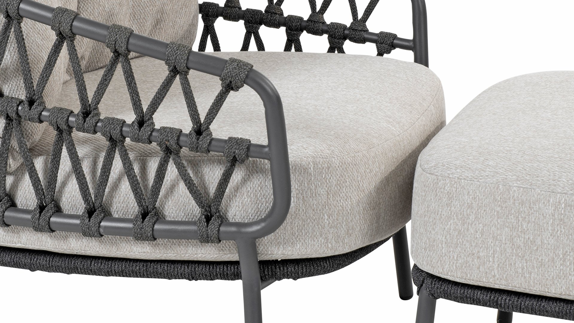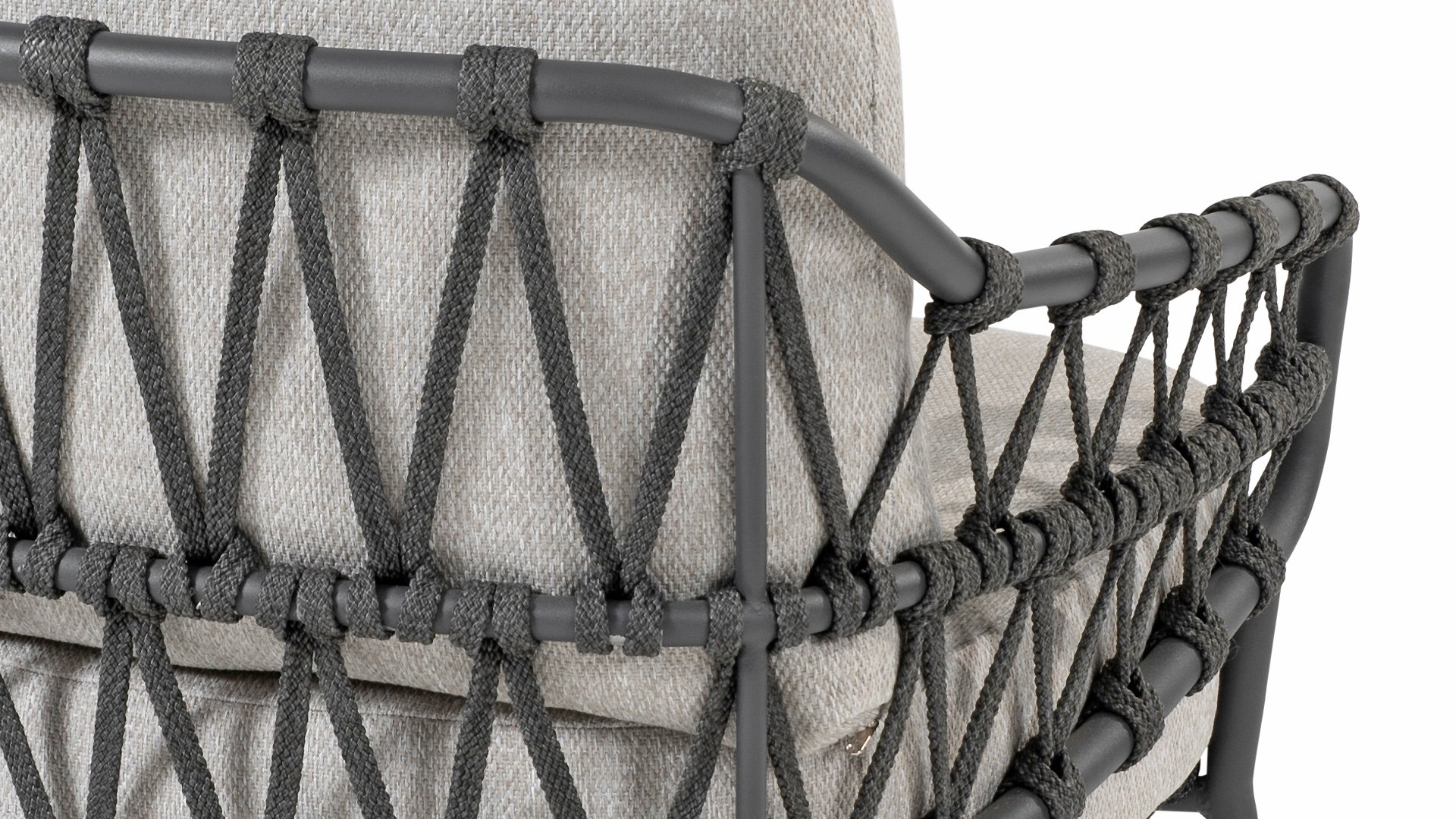 The Calpi series from 4 Seasons Outdoor has a contemporary design and gives every terrace the premium looks you are looking for. The wide rope sections are woven in an original way, giving the Calpi an open character. The 4Seasons Calpi comes with cushions in an all-weather fabric. This fabric has a water and dirt repellent effect, making it resistant to various weather conditions.