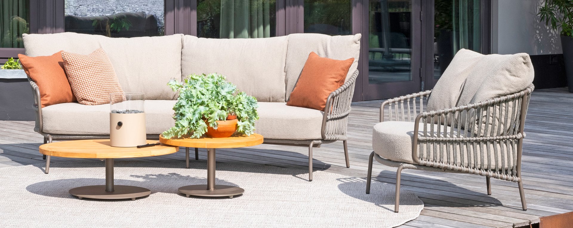 Bring the Tuscan feeling to your own garden with Capalbio. The modern design of the Capalbio series from 4 Seasons Outdoor combines beautifully with the earthy colors in your garden. This furniture series combines a earth-colored stainless steel frame with beautiful rope patterns and bouclé cushions. Discover the extensive Capalbio collection and complete your garden decor.