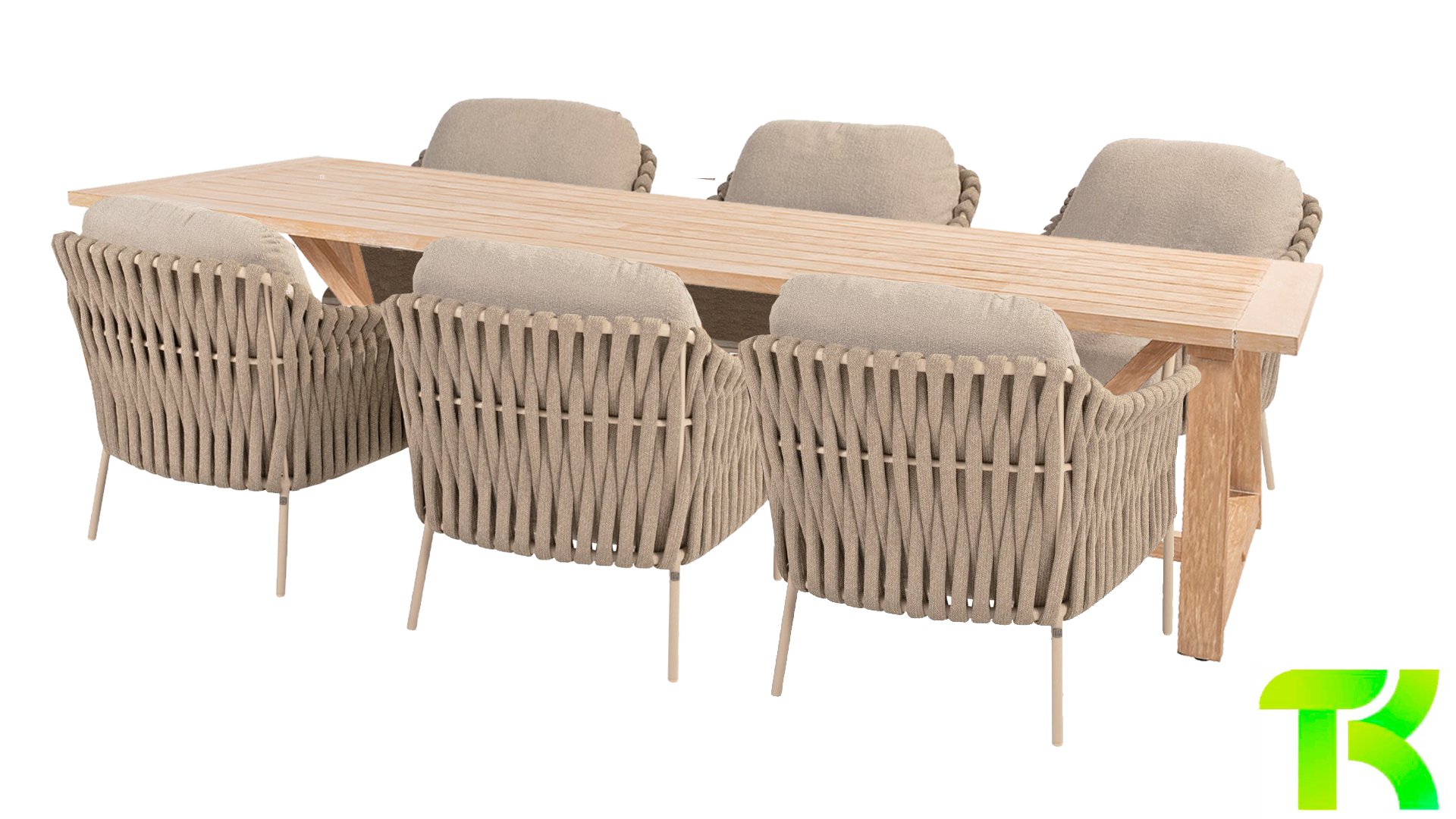• The Noah brushed teak table from Taste 4SO is a robust table that exudes elegance. The teak is brushed, giving it a rough, natural finish with light highlights in the grooves. This finish gives the table a unique look. The 300 size provides ample seating at this table. The Noah table is also available in the normal teak finish and with a stainless steel base. Visit our showroom now to explore the options of this beautiful table.