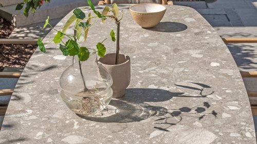 Heat and cold are no problem for ceramic, so garden tables can remain outdoors year-round.