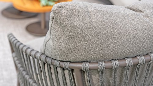 This beautiful material is perfect for outdoor use, because 4SO Rope is not just an shoelace. Our round wires have a synthetic core. This polypropylene base ensures minimal stretching of the rope and also does not absorb moisture. The covering is made of an acrylic fabric, similar to the weather-resistant fabric of our garden cushions. This covering feels soft but is highly water-repellent, UV-resistant, and colorfast. The flat rope variants have the same mix of weather-resistant materials, but the polypropylene material is interwoven with the acrylic fabric. This technique gives the flat rope the same properties but a completely different look. The stretch is minimal, and 4 Seasons Outdoor garden furniture with Rope is suitable for people weighing up to 110 kg. It's therefore an exceptionally strong material, but it's important to be careful with sharp objects. Our Rope is weather-resistant, but a sharp object can seriously damage your garden furniture. We offer exclusive designs using hand-woven Rope patterns and techniques.