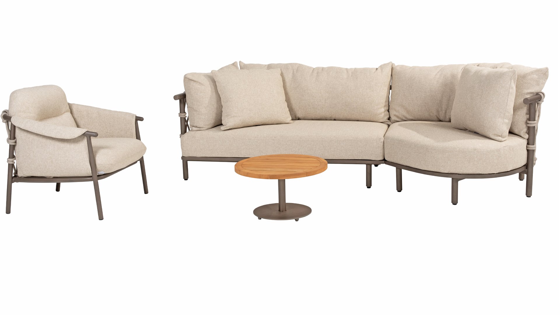 Experience ultimate comfort and stylish elegance with the Ezra lounge from 4 Seasons Outdoor. This beautiful lounge set, executed in an elegant Terre color, features a stunning design that perfectly fits contemporary gardens. The fully aluminum frame is designed with sublime curves, while the thick lounge cushions provide a wonderful contrast and optimal comfort. Combined with the thick Rope, it creates a beautiful set!