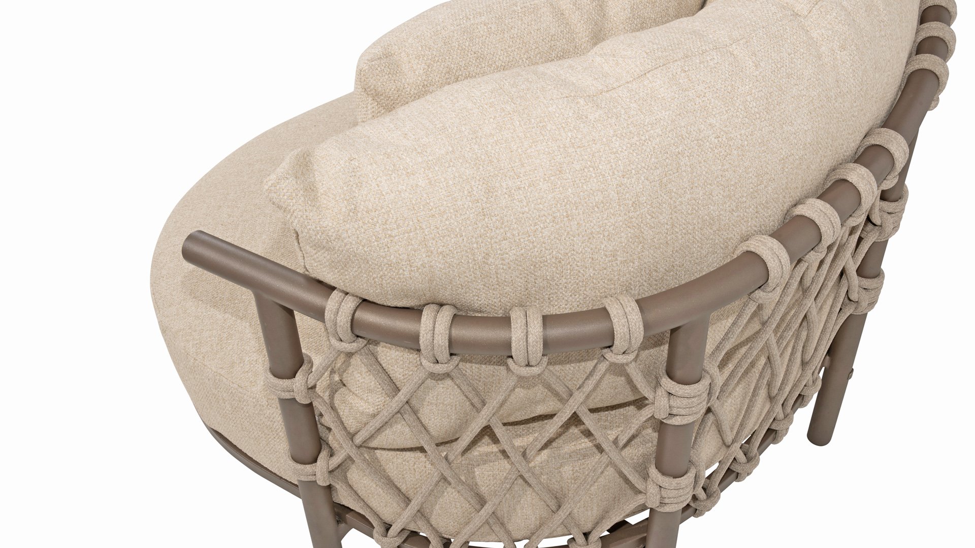 Experience ultimate comfort and stylish elegance with the Ezra lounge from 4 Seasons Outdoor. This beautiful lounge set, executed in an elegant Terre color, has a stunning design that perfectly complements contemporary gardens. The fully aluminum frame is designed with sublime curves, while the thick lounge cushions provide a delightful contrast and optimal comfort. Combined with the thick Rope, it creates a beautiful set!