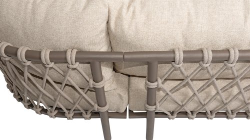 This beautiful material is perfect for outdoor use, because 4SO Rope is not just an shoelace. Our round wires have a synthetic core. This polypropylene base ensures minimal stretching of the rope and also does not absorb moisture. The covering is made of an acrylic fabric, similar to the weather-resistant fabric of our garden cushions. This covering feels soft but is highly water-repellent, UV-resistant, and colorfast. The flat rope variants have the same mix of weather-resistant materials, but the polypropylene material is interwoven with the acrylic fabric. This technique gives the flat rope the same properties but a completely different look. The stretch is minimal, and 4 Seasons Outdoor garden furniture with Rope is suitable for people weighing up to 110 kg. It's therefore an exceptionally strong material, but it's important to be careful with sharp objects. Our Rope is weather-resistant, but a sharp object can seriously damage your garden furniture. We offer exclusive designs using hand-woven Rope patterns and techniques.