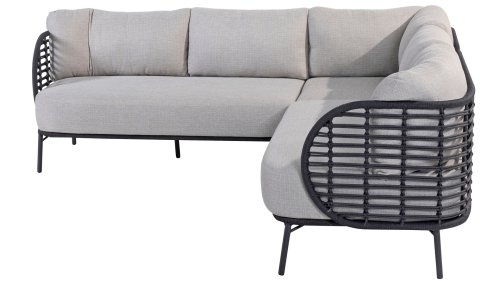 This beautiful material is perfect for outdoor use, because 4SO Rope is not just an shoelace. Our round wires have a synthetic core. This polypropylene base ensures minimal stretching of the rope and also does not absorb moisture. The covering is made of an acrylic fabric, similar to the weather-resistant fabric of our garden cushions. This covering feels soft but is highly water-repellent, UV-resistant, and colorfast. The flat rope variants have the same mix of weather-resistant materials, but the polypropylene material is interwoven with the acrylic fabric. This technique gives the flat rope the same properties but a completely different look. The stretch is minimal, and 4 Seasons Outdoor garden furniture with Rope is suitable for people weighing up to 110 kg. It's therefore an exceptionally strong material, but it's important to be careful with sharp objects. Our  Rope is weather-resistant, but a sharp object can seriously damage your garden furniture. We offer exclusive designs using hand-woven Rope patterns and techniques.