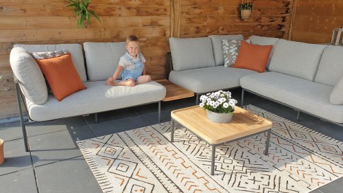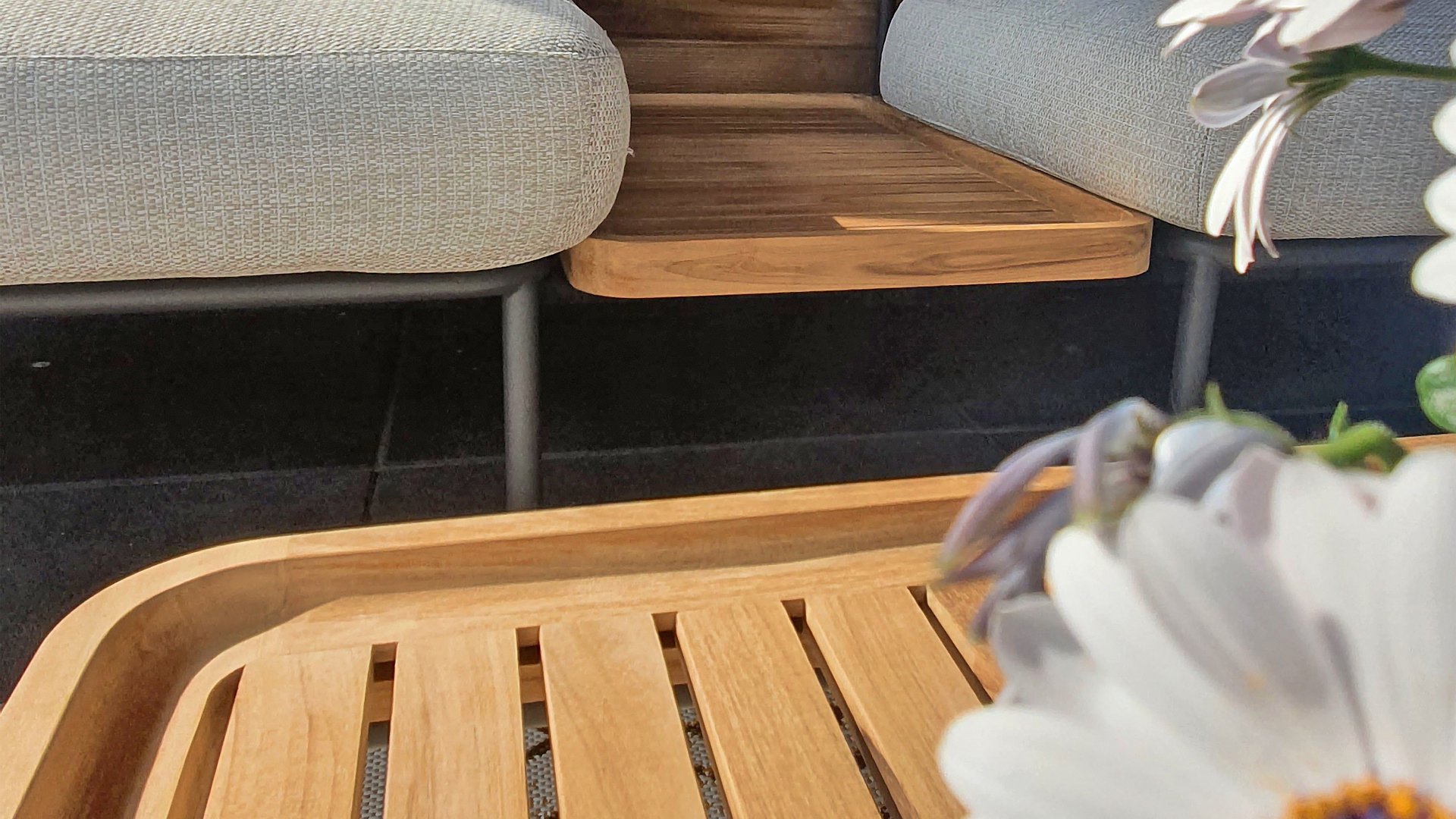 A well-thought-out design with many surprising details. The modular Figaro lounge will continue to surprise you. A modern frame with beautiful angles, fantastic seating comfort and the refined finish of the teakwood elements.