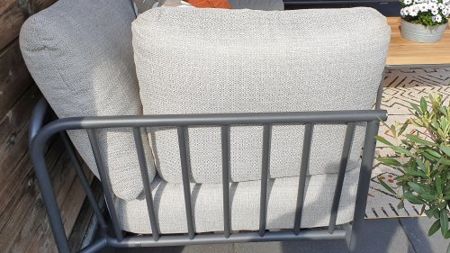 Less is more, within our Figaro series, the garden furniture is designed with primarily functional simplicity and graceful design. The beautiful frames are made of aluminum and have an anthracite coating. The round shapes keep this modern design perfectly in balance. The Figaro garden furniture has extra thick and very comfortable cushions with a cover made of Olefin fabric, which is very weather resistant and durable. Zip off the cover and wash / dry it at 30 degrees. The minimalist frame is made of very strong aluminum, which gives the 4Seasons Figaro Lounge Set more than enough stability and wear resistance. The frame is finished with an anthracite colored powder coating, creating a harmony of colors.